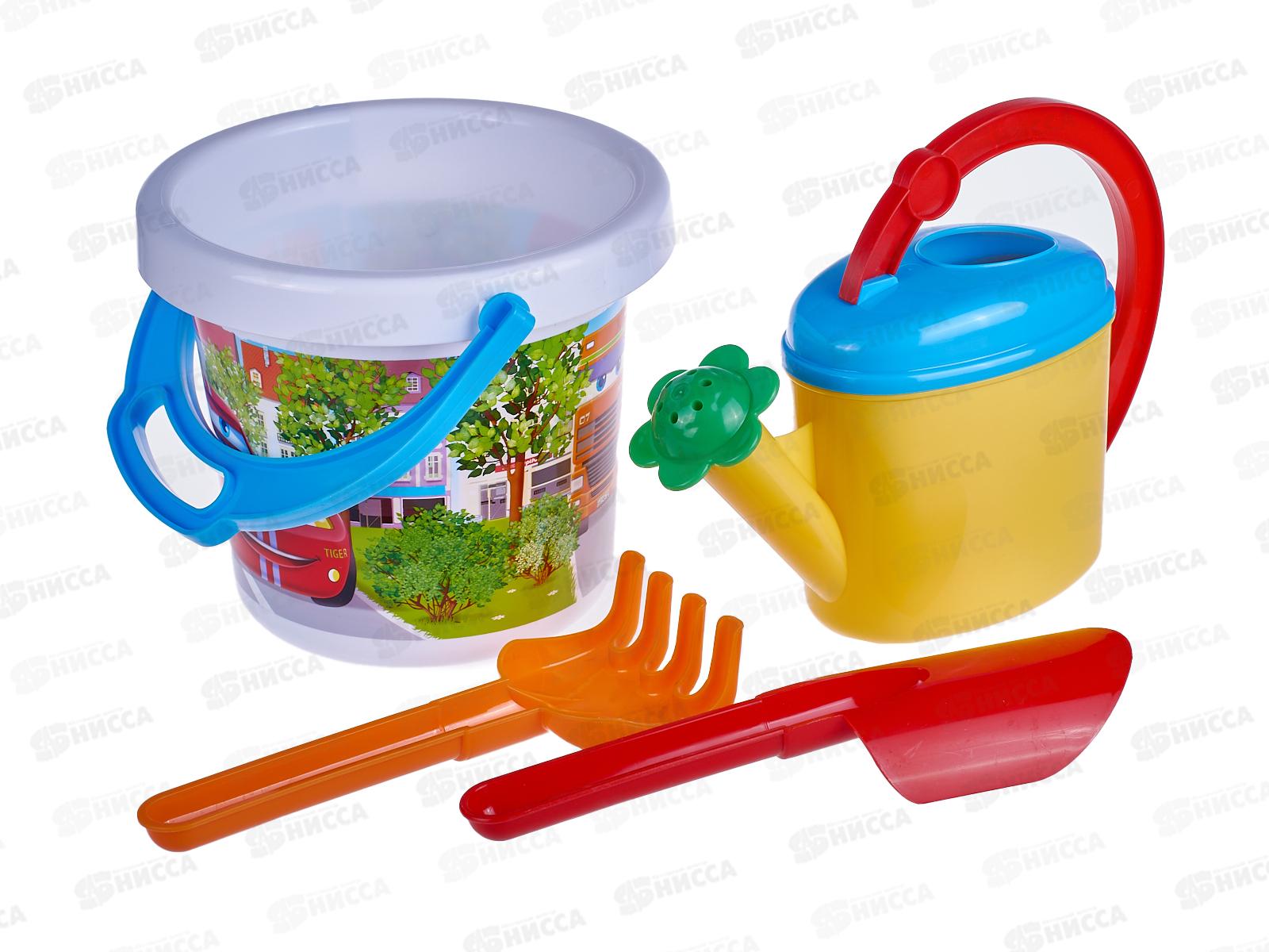 Код:474437; Набор песочный №123, 01823 (ведро 0,8л, совок 19см, грабли 19см, лейка 0,4л) *28