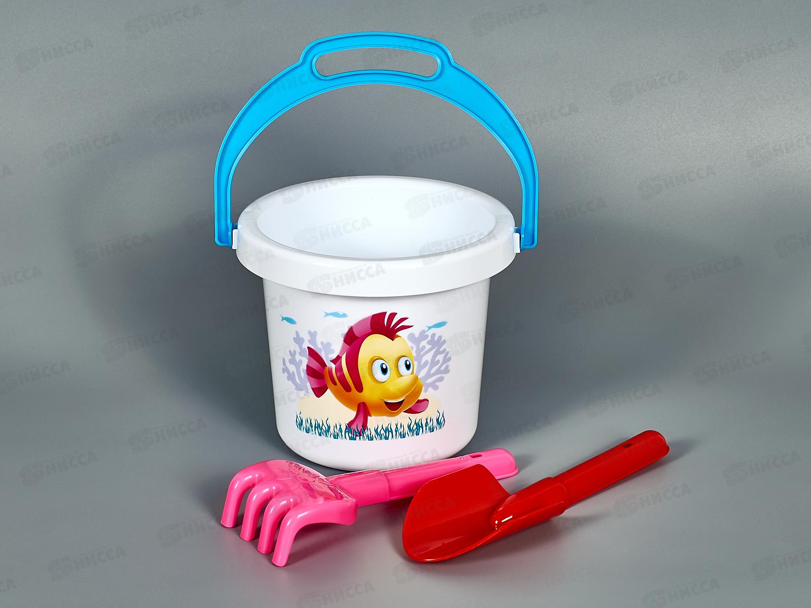 Код:474439; Набор песочный №127, 01827 (ведро 1,5л, сито, совок 21см, грабли 20см, 3 формочки) *14
