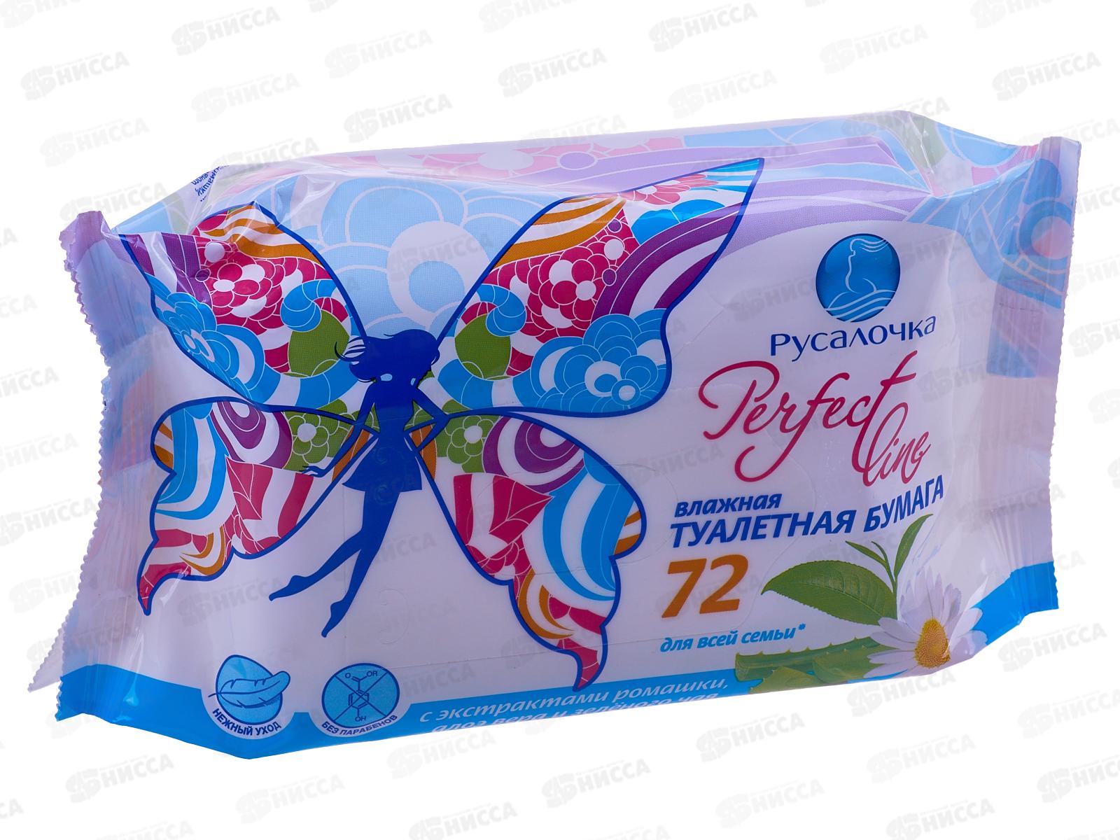 Код:078813; РУСАЛОЧКА влажная туалетная бумага Perfect line для все семьи 72шт *20