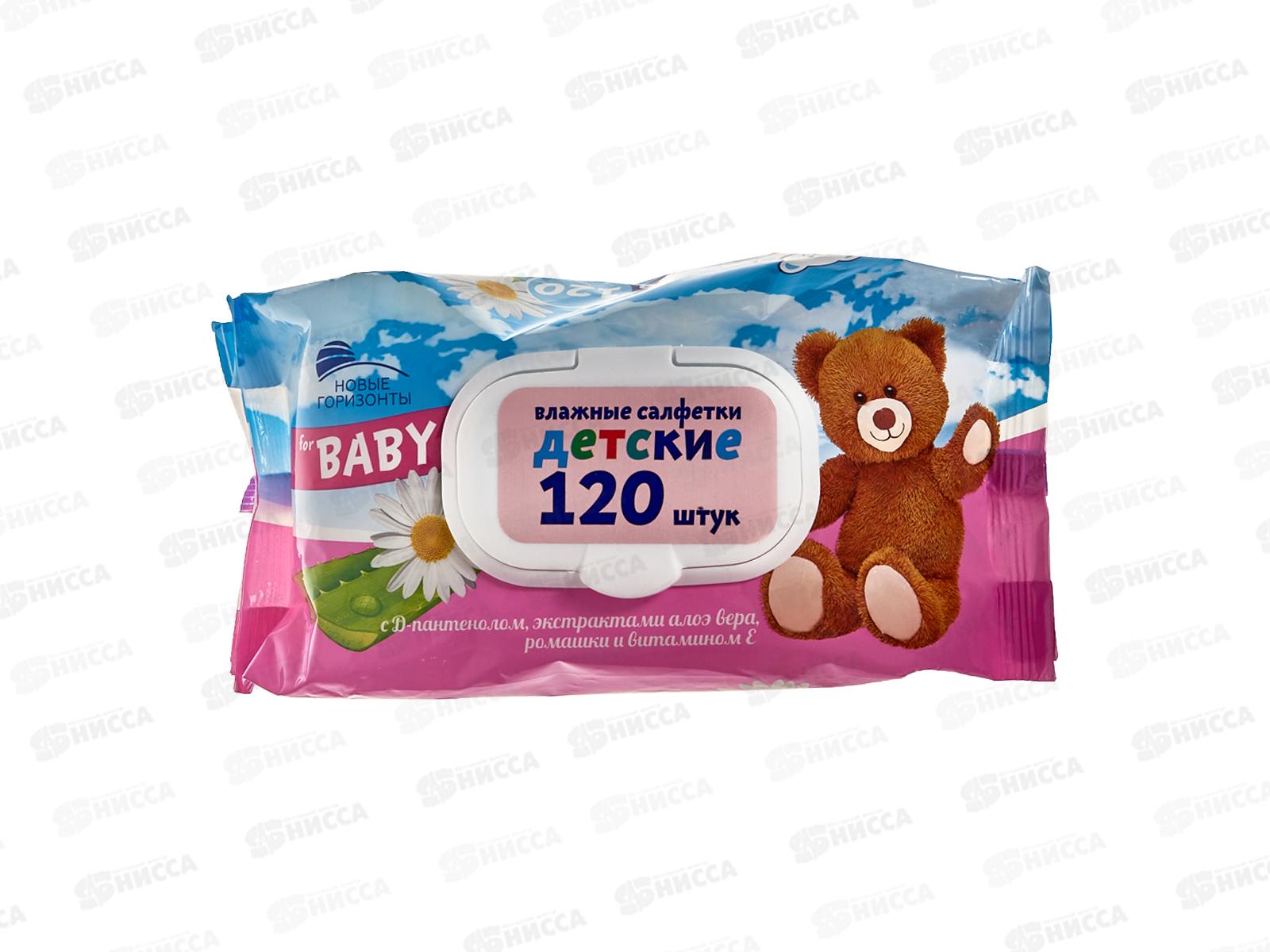 Код:503394; Новые Горизонты влажные салфетки детские 120шт ромашка-алоэ *12
