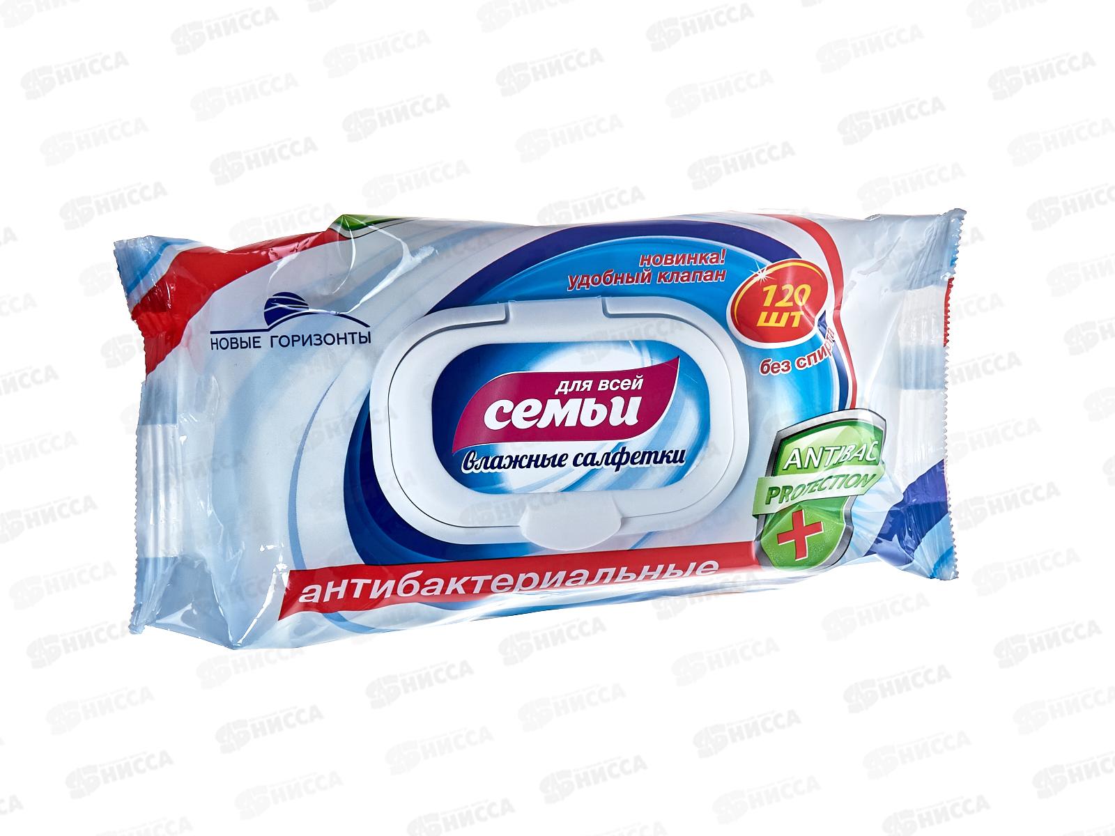 Код:503397; Новые Горизонты влажные салфетки антибактериальные 120шт для всей семьи *12
