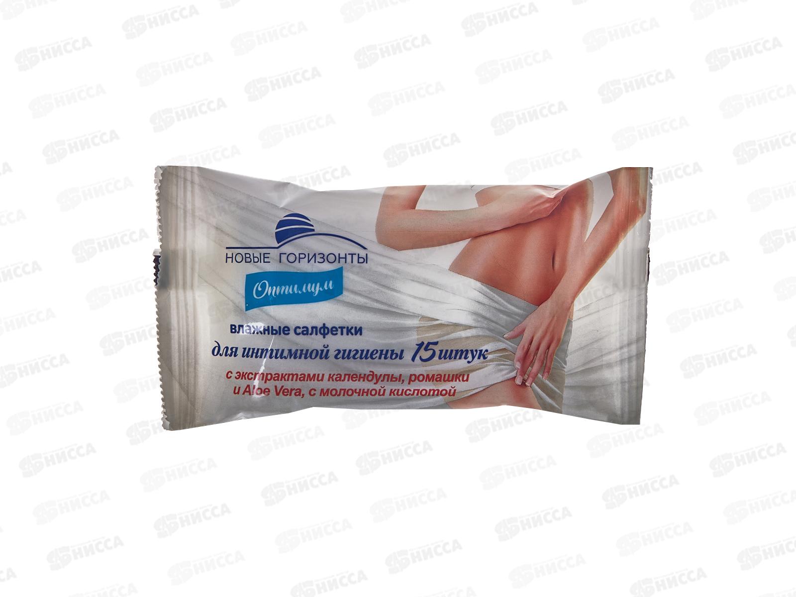 Код:509300; Новые Горизонты влажные салфетки для интимной гигиены 15шт Оптимум *48