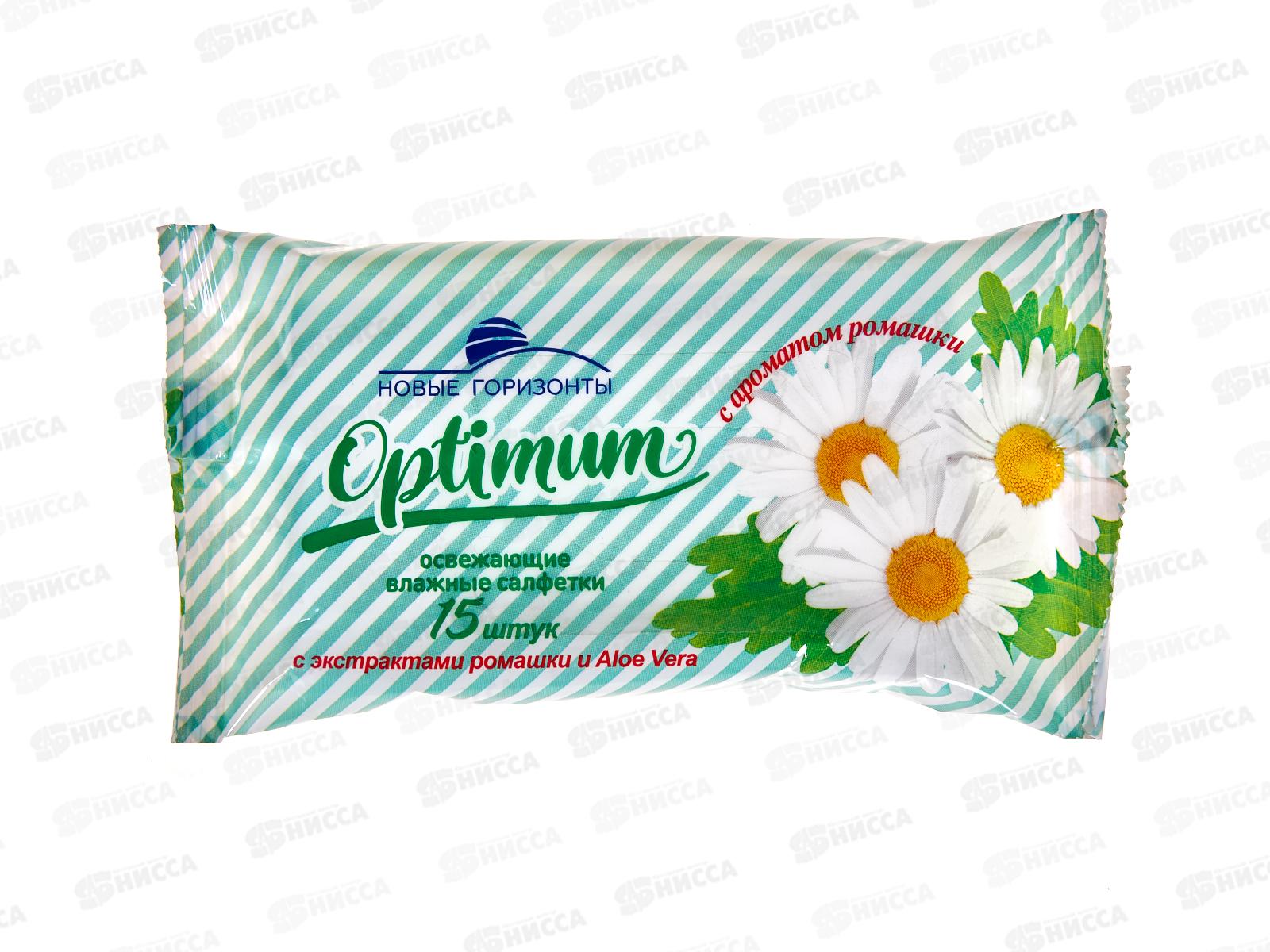 Код:538968; Новые Горизонты влажные салфетки освежающие Оптимум с ароматом ромашки 15шт *48