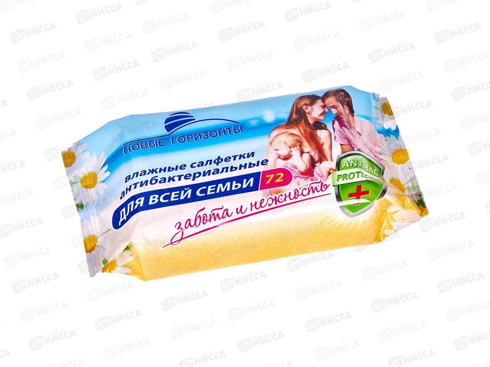 Код:548451; Новые Горизонты влажные салфетки антибактериальные 72шт для всей семьи *24