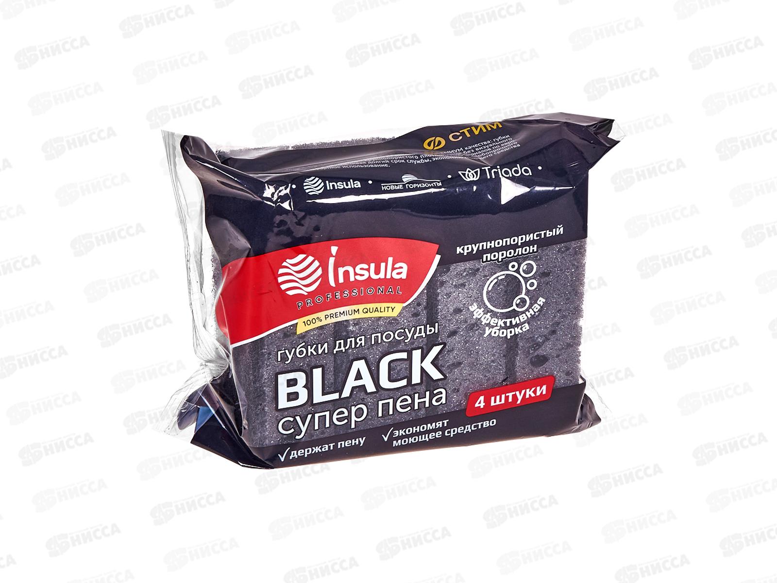 Код:566810; INSULA Губки д/посуды Проф супер пена Блэк 4шт *30