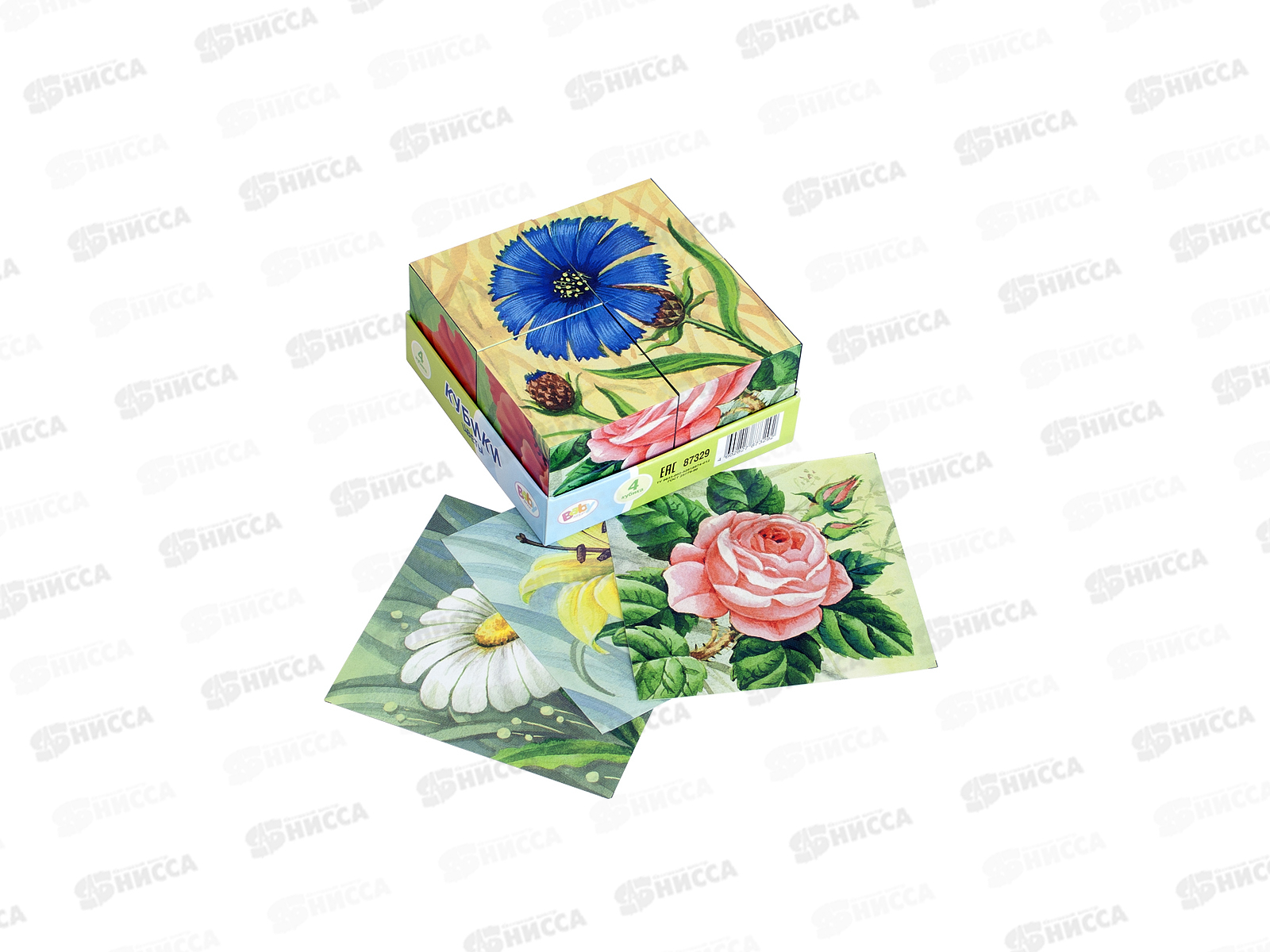 Код:390487; Кубики 87329 4 кубика Baby Step "Цветы" *18