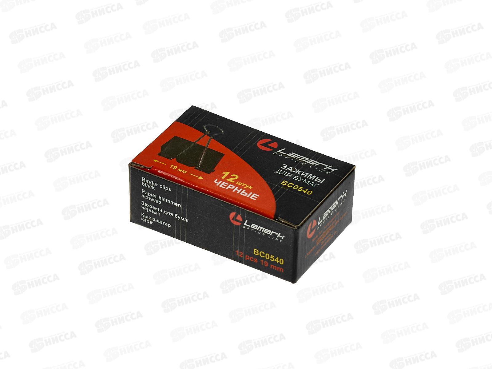 Код:029906; Зажим для бумаг LAMARK, BC0540 черный, пластиковая упаковка 19мм 12шт *12