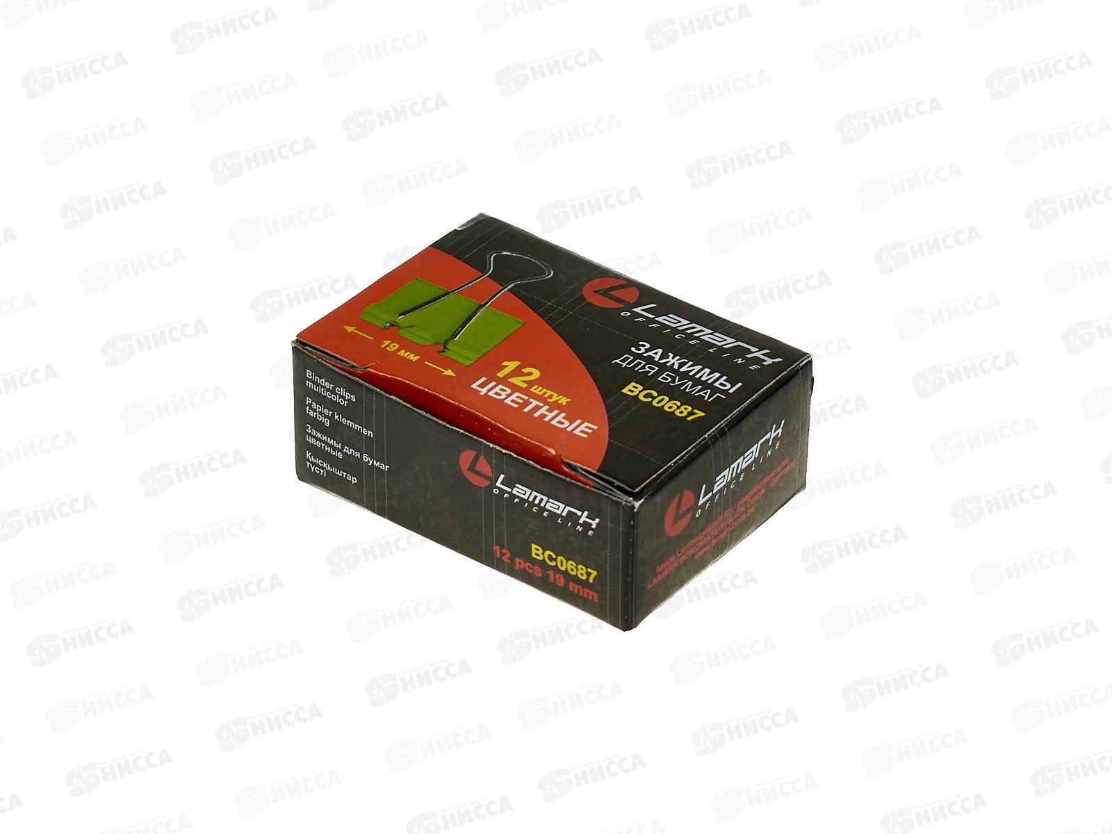 Код:046009; Зажим для бумаг LAMARK, BC0687 19мм 12шт неоновый, картонная упаковка *12
