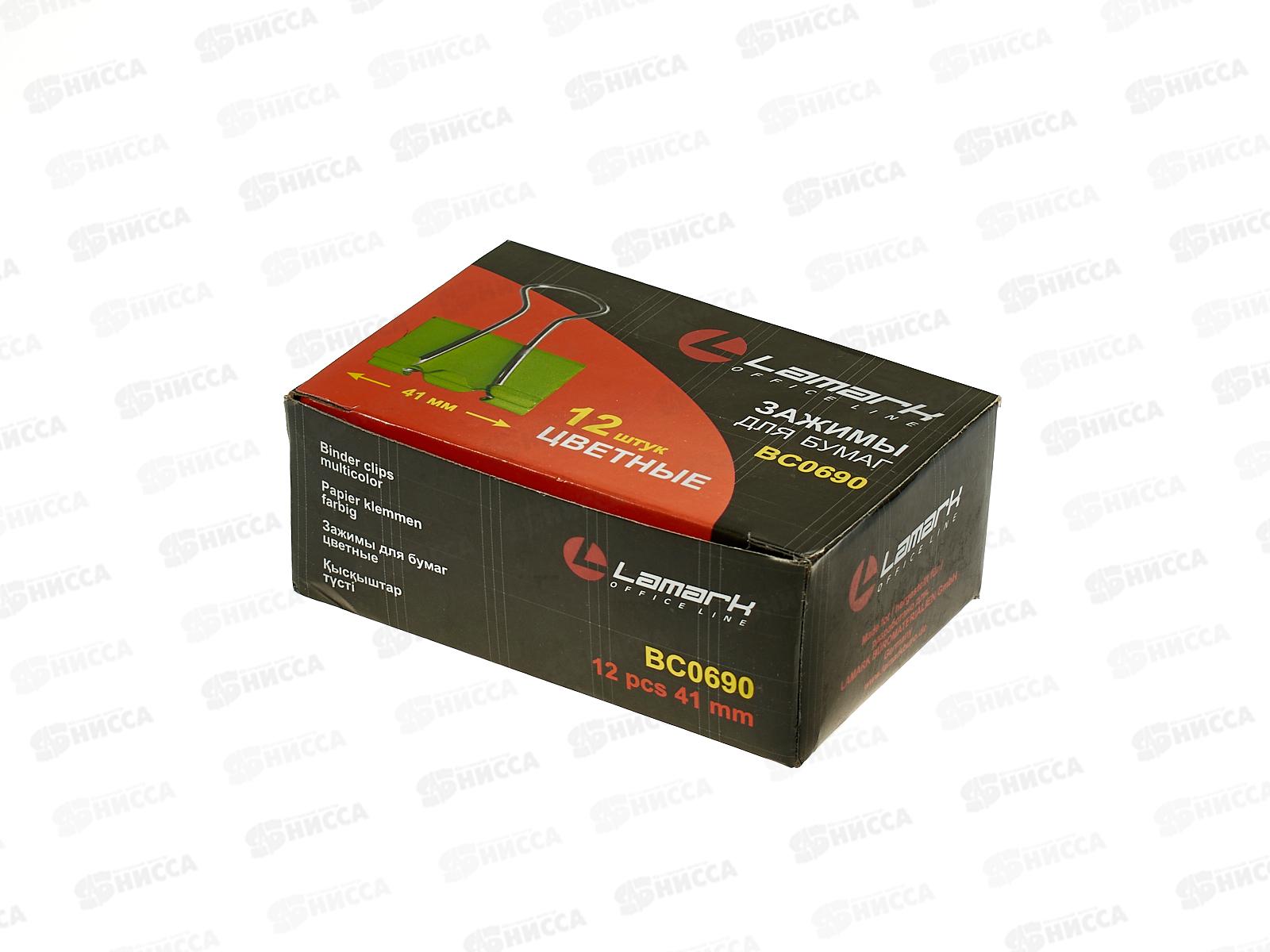 Код:046063; Зажим для бумаг LAMARK неоновый, картонная упаковка, BC0690 41мм 12шт *120