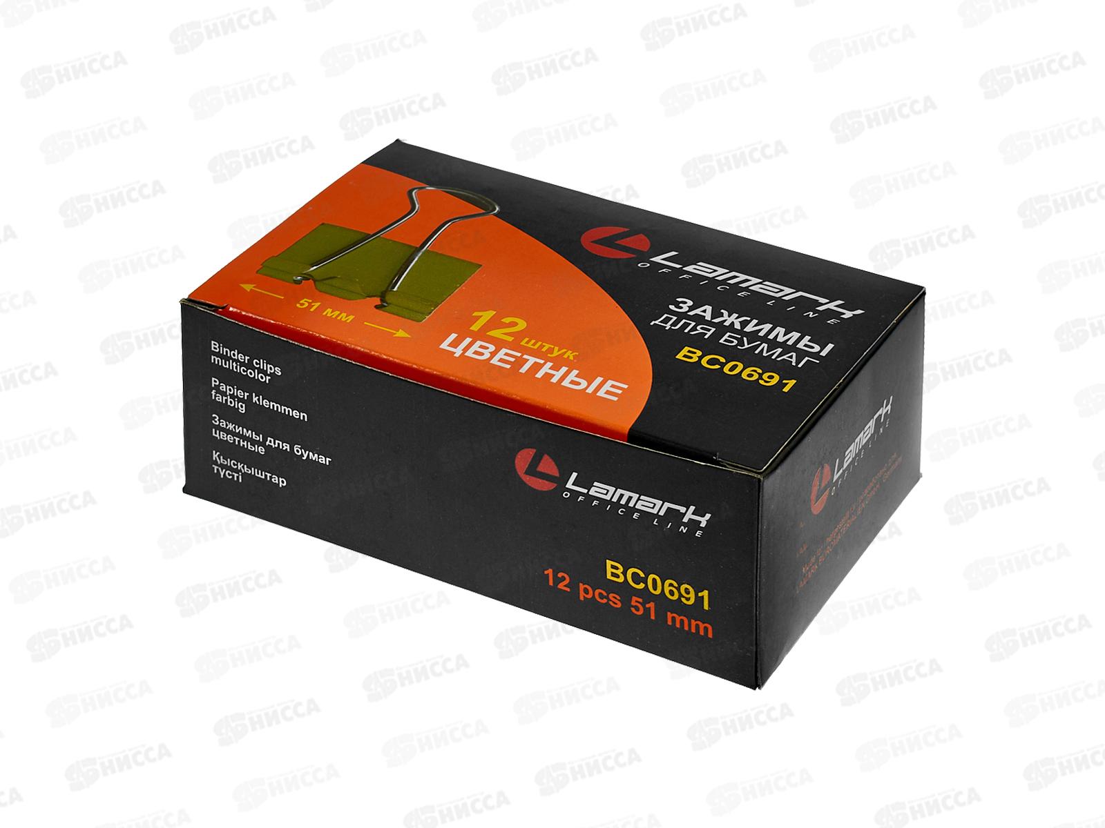 Код:447229; Зажим для бумаг LAMARK BC0685 51мм 12шт черный, *60