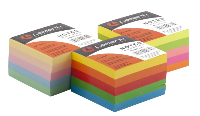 Блок бумаги для записей Lamark. Бумага пяти пастельных цветов плотностью 80 г/м2. Размер листа 85х85 мм, всего 500 листов. Блок вместе с этикеткой упа...
