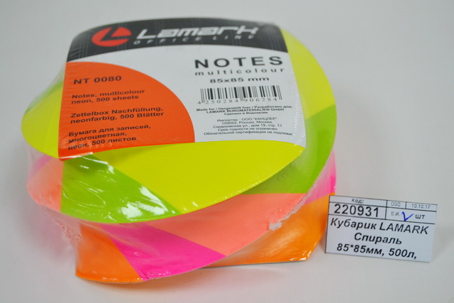 Код:220931; Кубарик LAMARK Спираль 85*85мм, 500л, 5 цветов,неон NT0080 *16