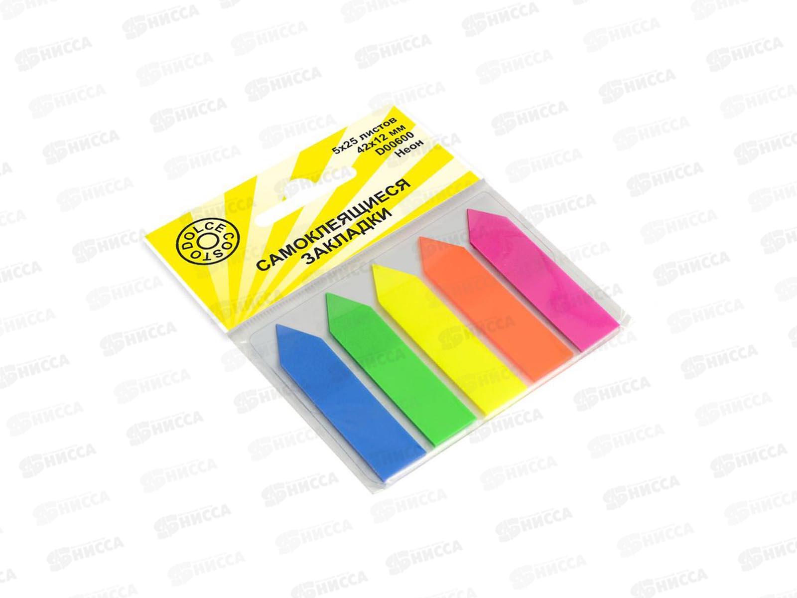 Код:584090; Закладки-стрелки Dolce costo пластик 4*12мм 5цв*25л 0600 *12