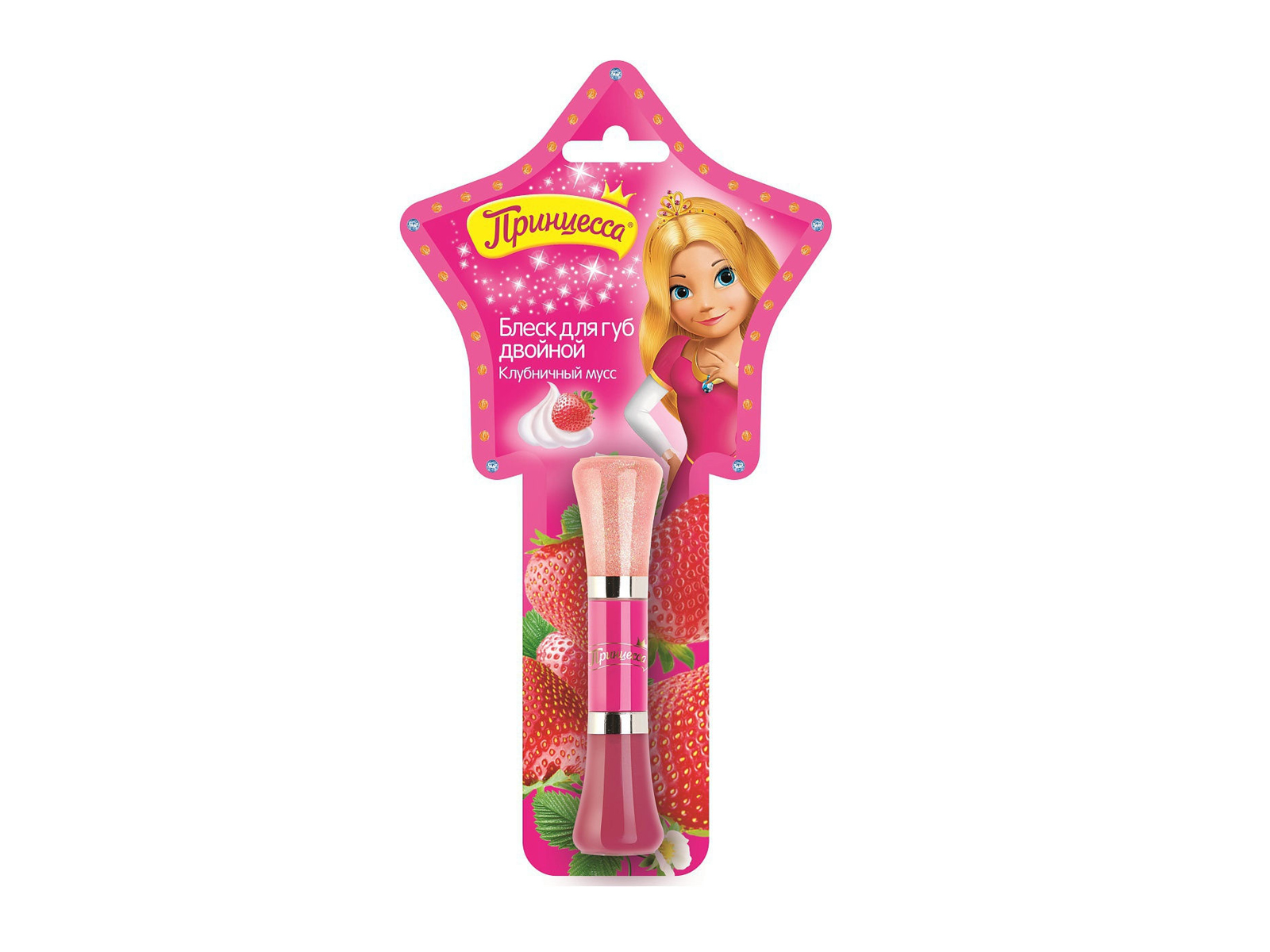 Код:139110; ПРИНЦЕССА Блеск детский двойной для губ КЛУБНИЧНЫЙ МУСС *12