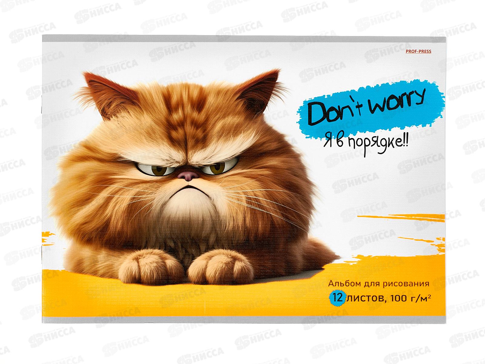 Код:552267; Альбом для рисования 12л ПП Сердитый кот, 12-0239