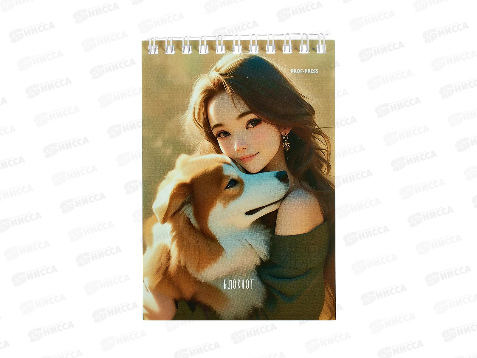 Код:592813; Блокнот ПП 40л А6 Девушки и питомцы - 2, ассорти, гребень, клетка, Б40-7016