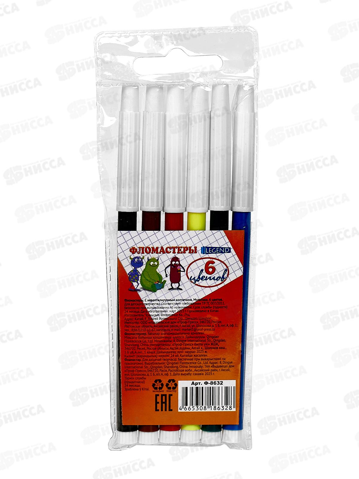 Код:519980; Фломастеры 6 цветов Legend Мультики, невентилируемае колпачки, Ф-8632 на блистере *24