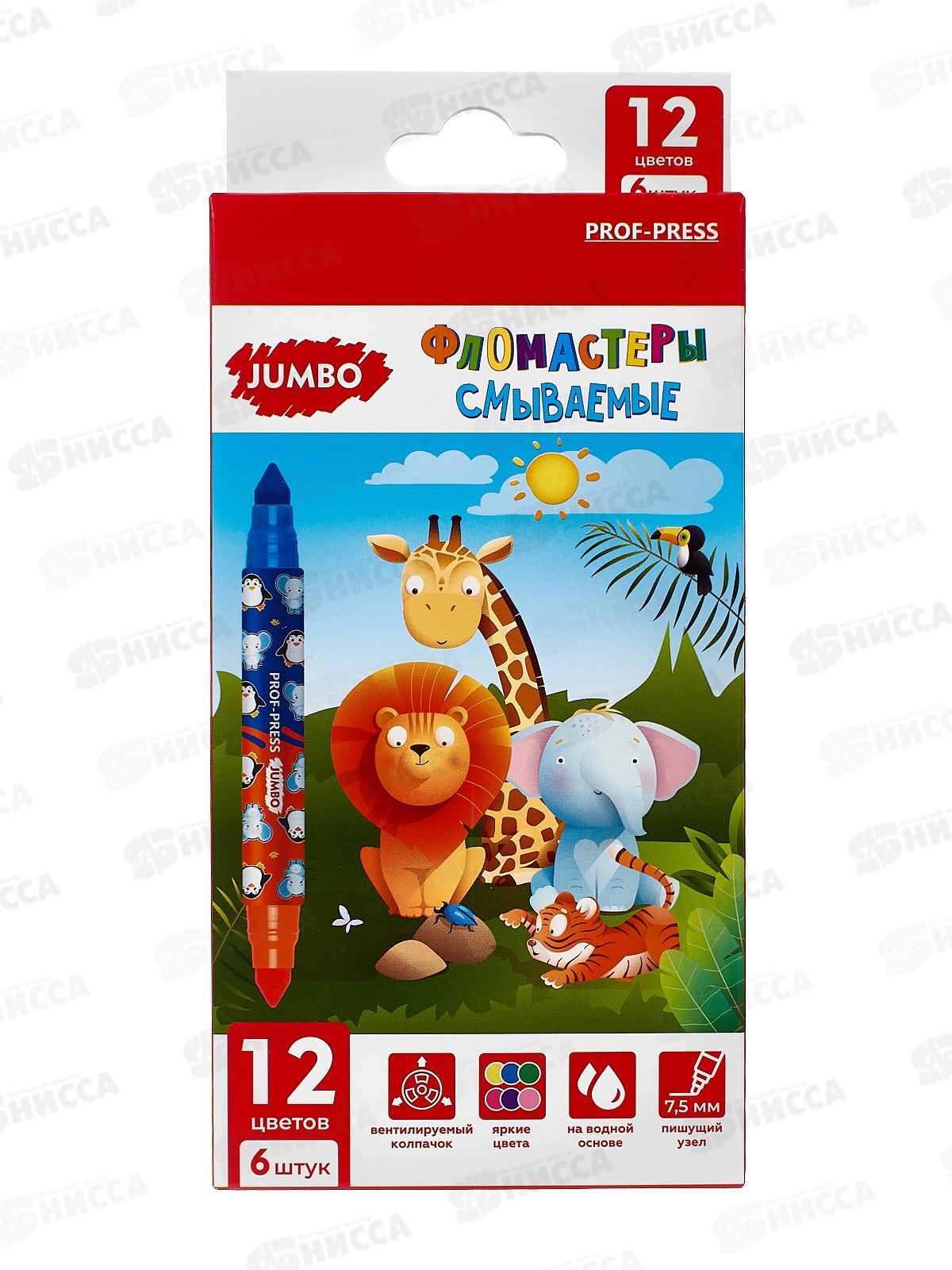 Код:585723; Фломастеры 12цв. ПП Джамбо, двустор. 6шт, Забавные зверюшки, смываемые, ФЛ-4462*12