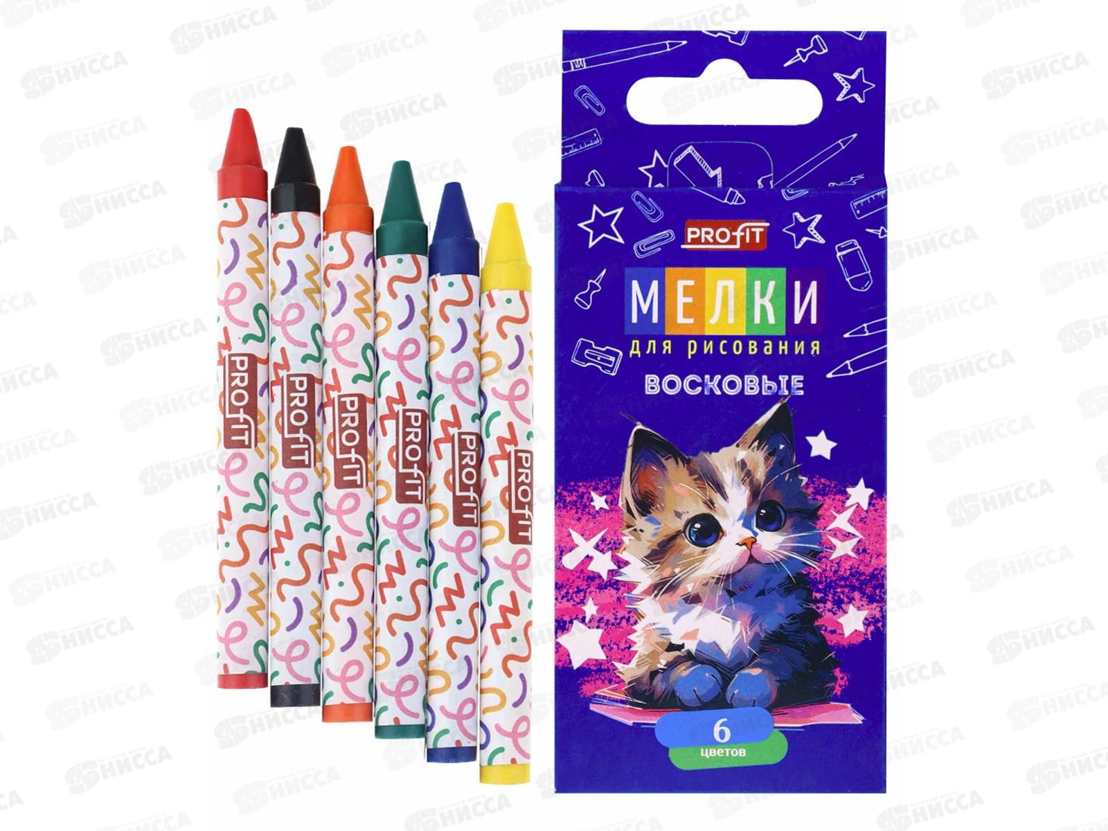 Код:571771; Мелки восковые Profit Весёлый котёнок 6цв, ШМ-4517 *80