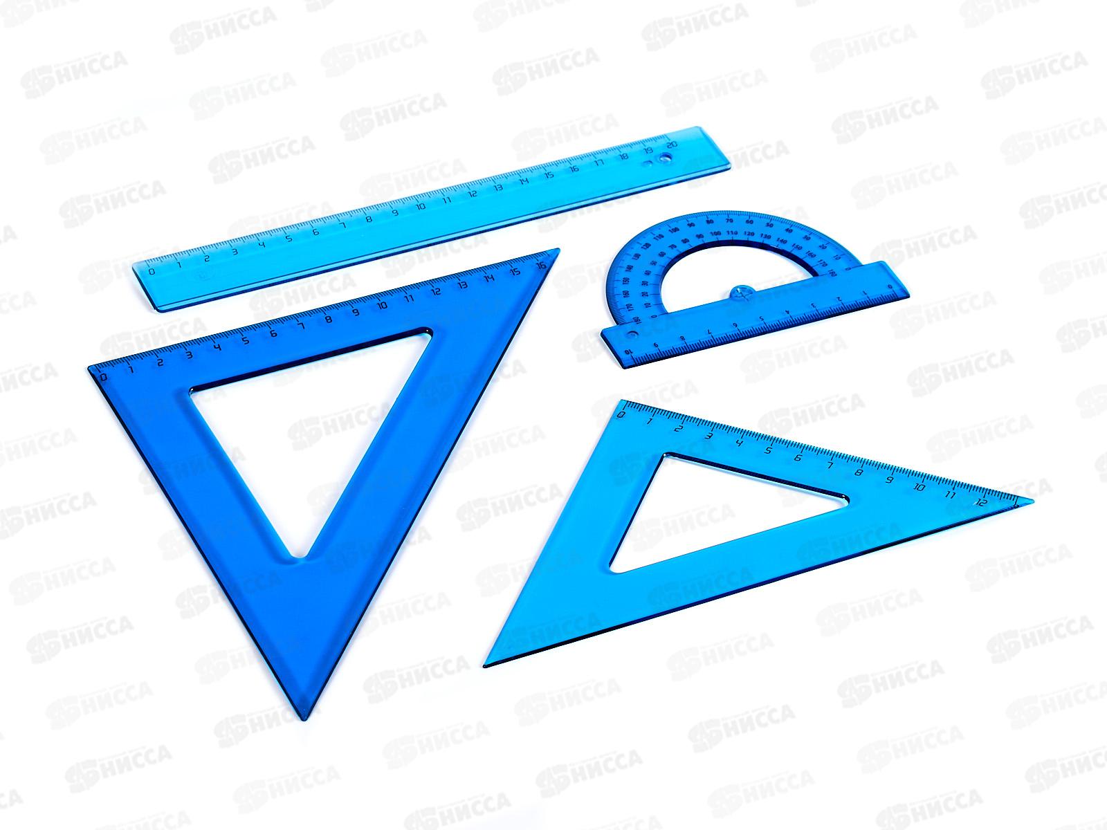 Код:585728; Набор чертежный ПП (треуг. 12см, 16см, линейка 20см+трансп.) проз., НЧ-3171 *80