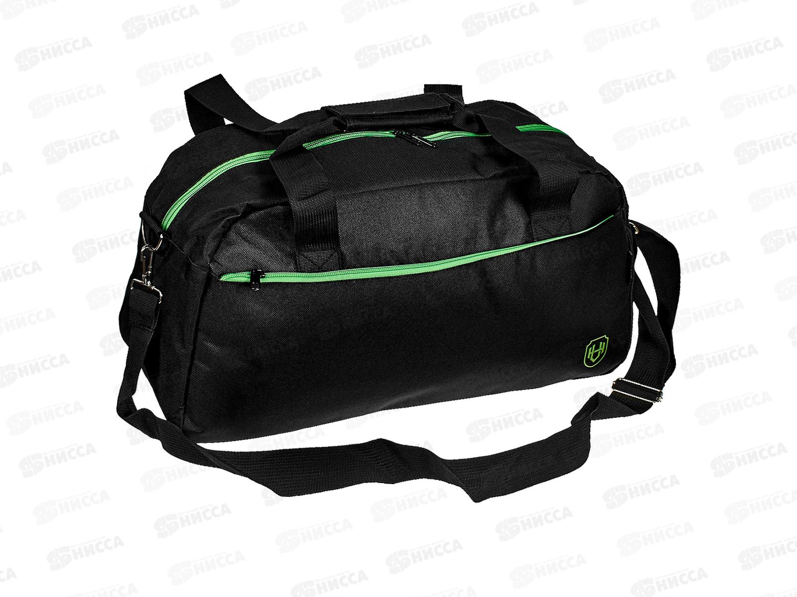Код:585756; Сумка тканевая спортивная, с ремнем, черная с зелен. 45*25*17, СМ-2022
