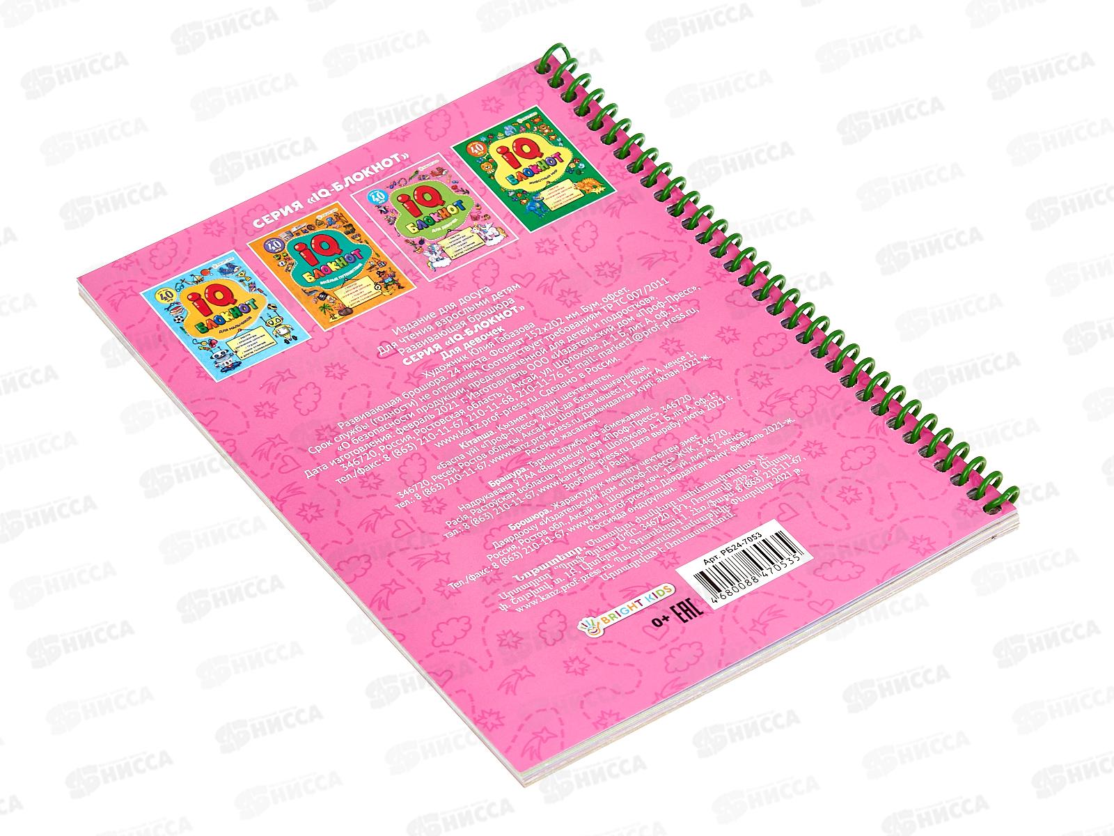 Блокнот 24листа ПП А5 IQ Для девочек, офсет, на гребне, РБ24-7053 *24