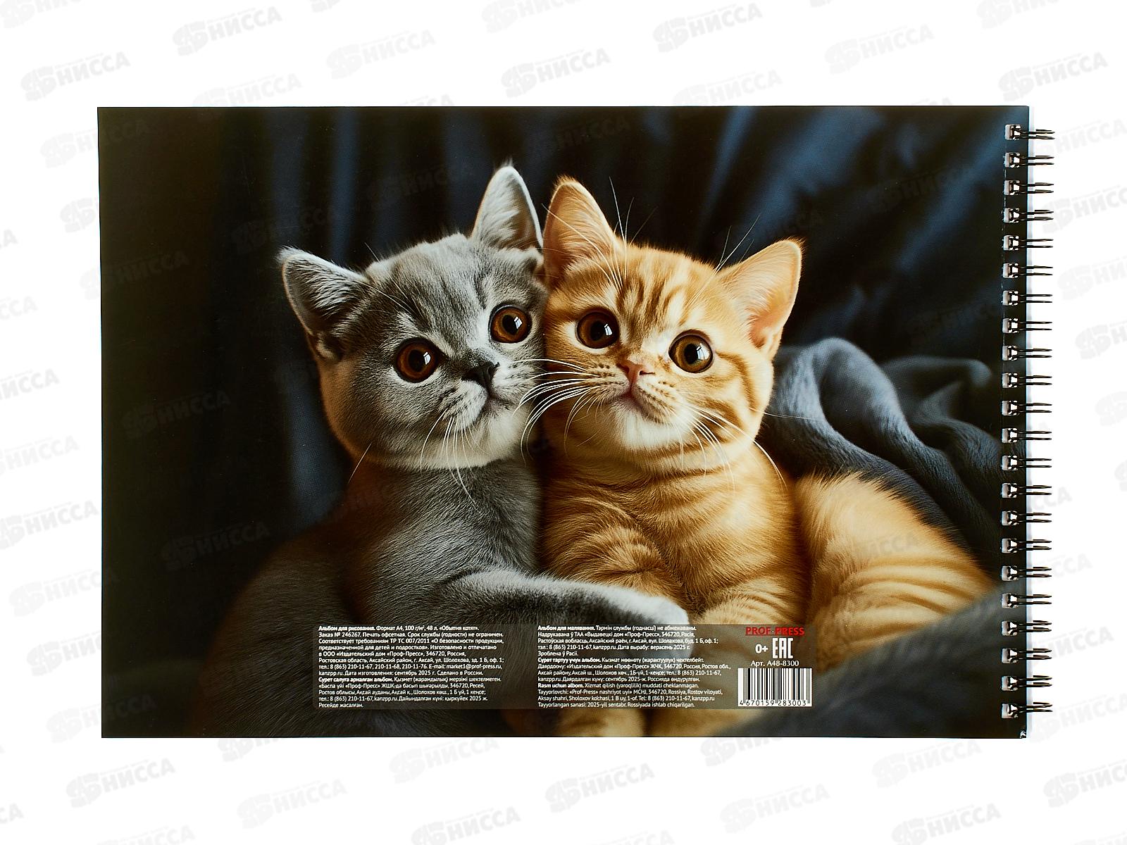 Альбом д/рис.48л ПП Объятия котят, офс., гребень, А48-8300