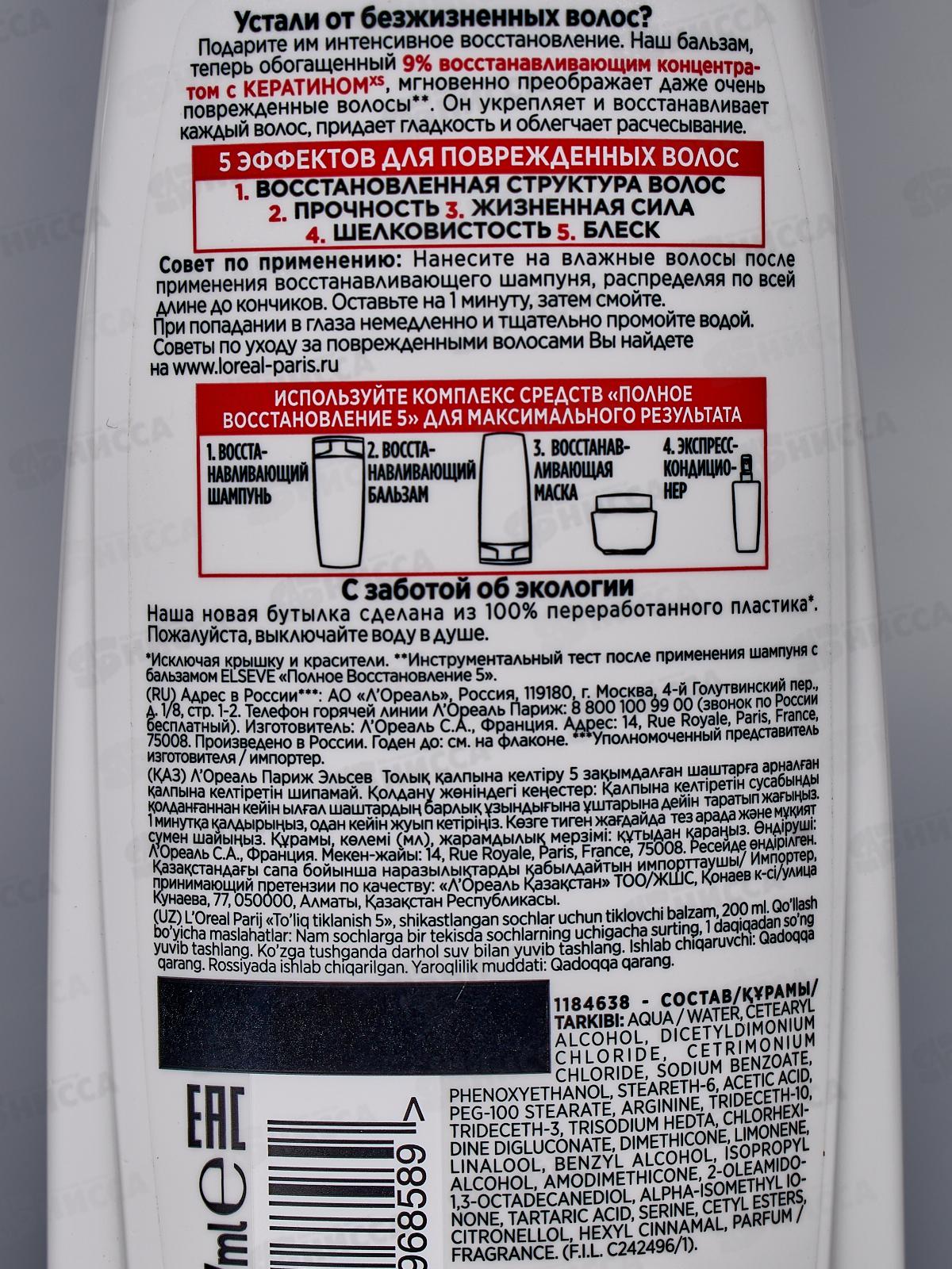 ЭЛЬСЭВ бальзам-ополаскиватель 200мл Полное восстановление *12