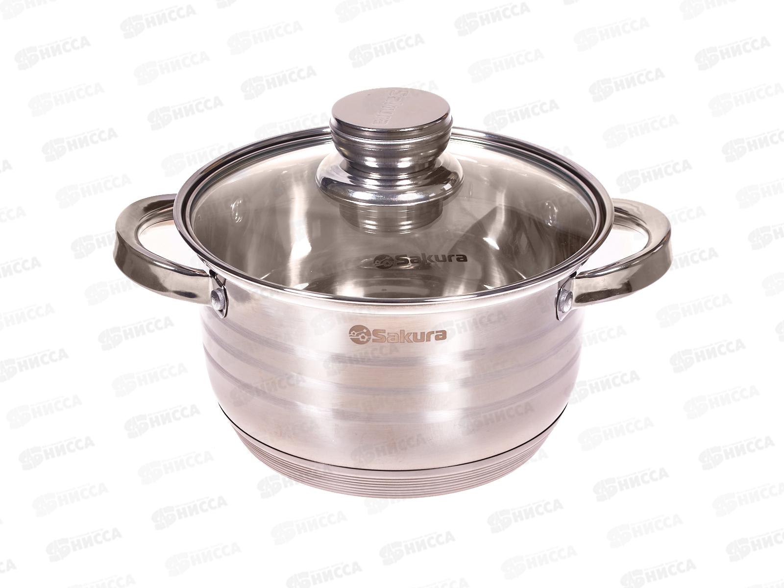 Кастрюля от бренда Sakura SA-P1022, со стеклянной крышкой. Объем кастрюли 4,5 л, диаметр 22 см, высота 13,3 см. Корпус кастрюли выполнен из нержавеюще...