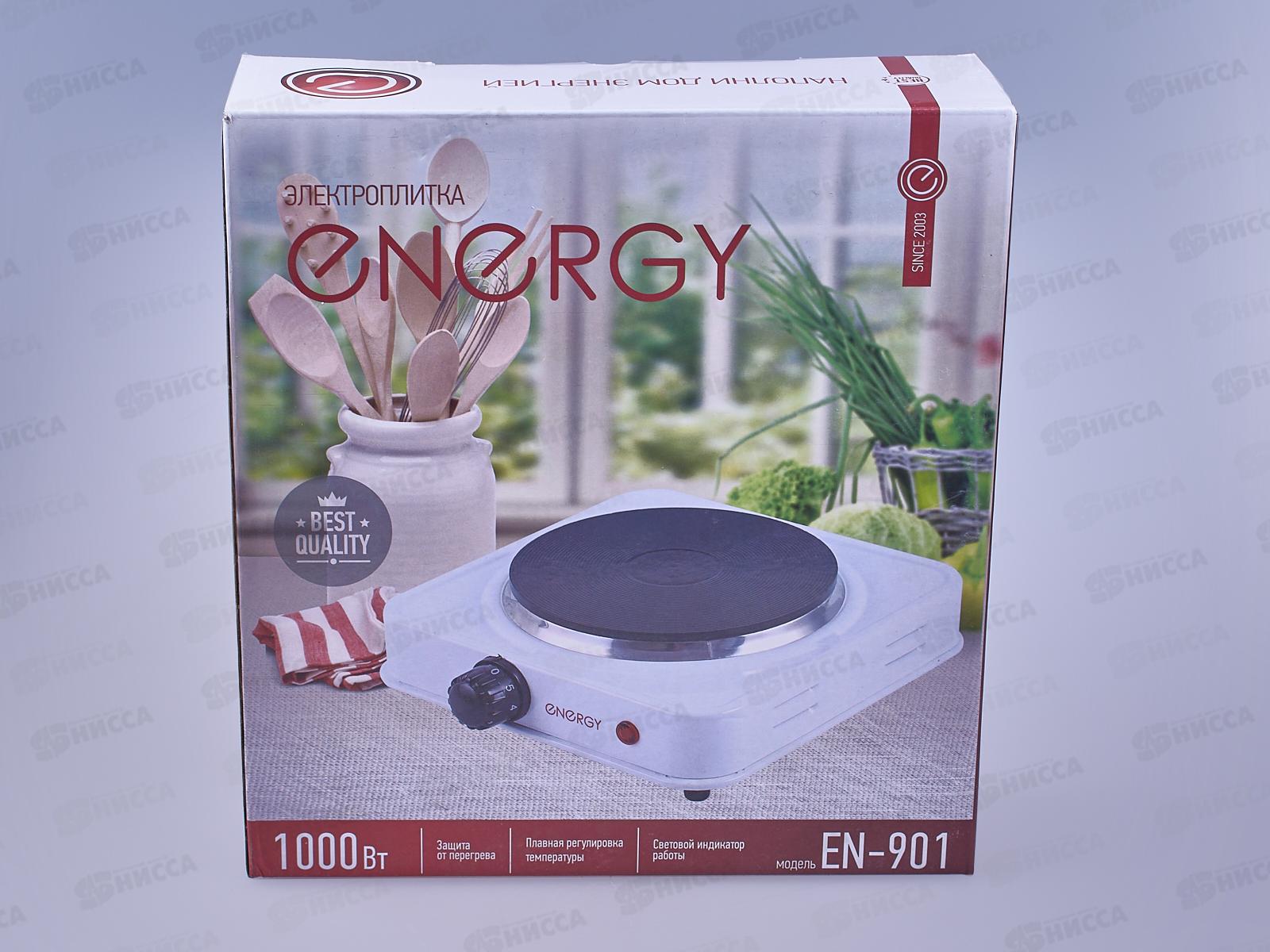 Плита компактная электрическая ENERGY EN-901 с 1 конфоркой дополнена механическим переключателем, посредством которого производится выбор необходимой мощности нагрева. В качестве покрытия рабочей поверхности производитель выбрал особую эмаль, очистка которой даже от въевшихся загрязнений производится в считанные минуты. Конфорка ENERGY EN-901 выполнена с использованием чугуна. Данный материал остается горячим на протяжении длительного времени, что позволяет довести до готовности различные блюда, не расходуя электричество. Благодаря прорезиненным ножкам в основании гарантировано устойчивое положение прибора даже на самых неровных поверхностях.