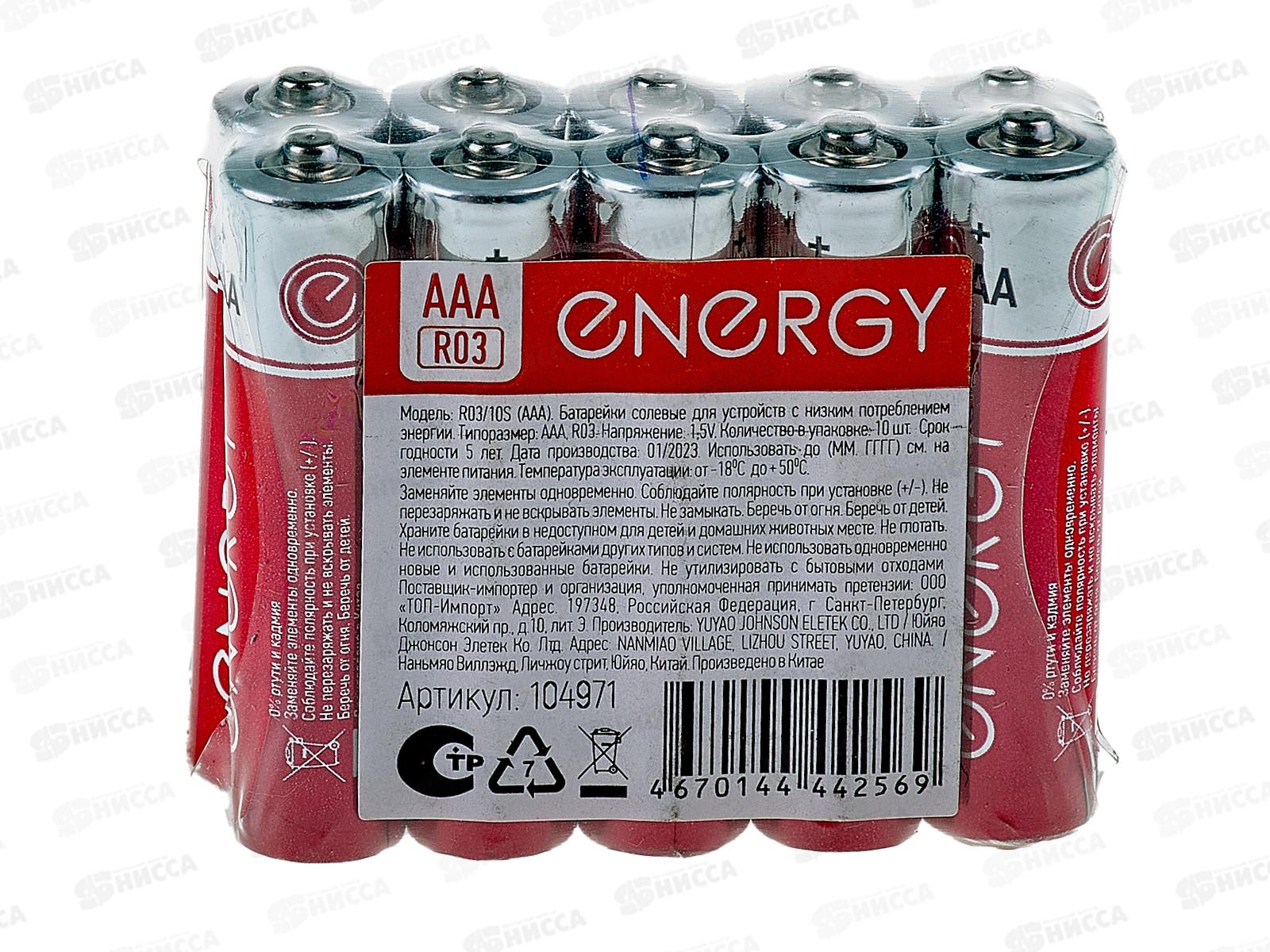 Батарейка Energy солевая R03/10S (AAA) 10шт в спайке 104971 *6