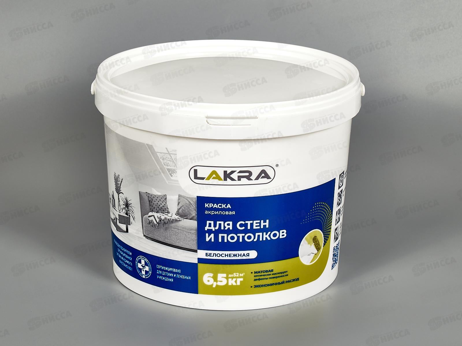 Код:446295; Краска акриловая для стен и потолков Лакра белоснежная 6,5кг, 8306470 *72