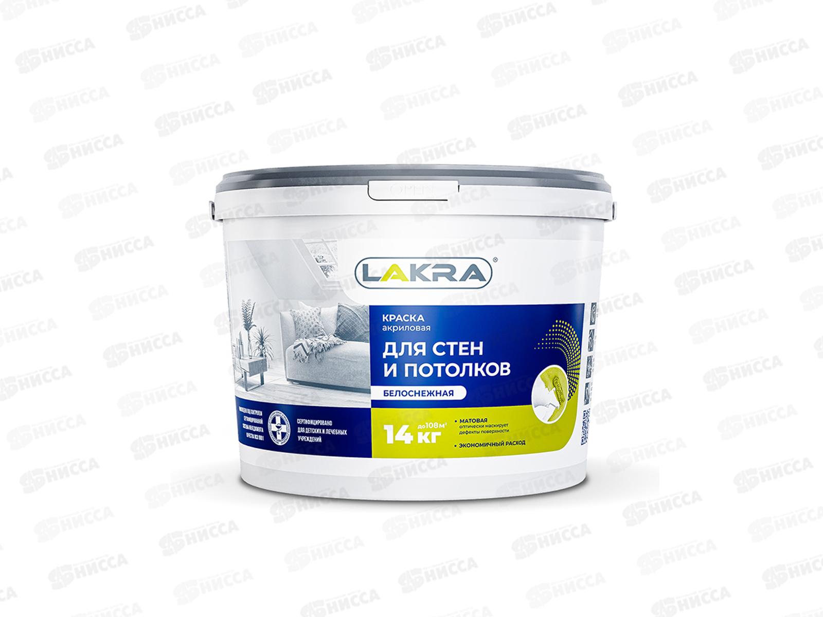 Код:446296; Краска акриловая для стен и потолков Лакра белоснежная 14кг, 8306469 *44