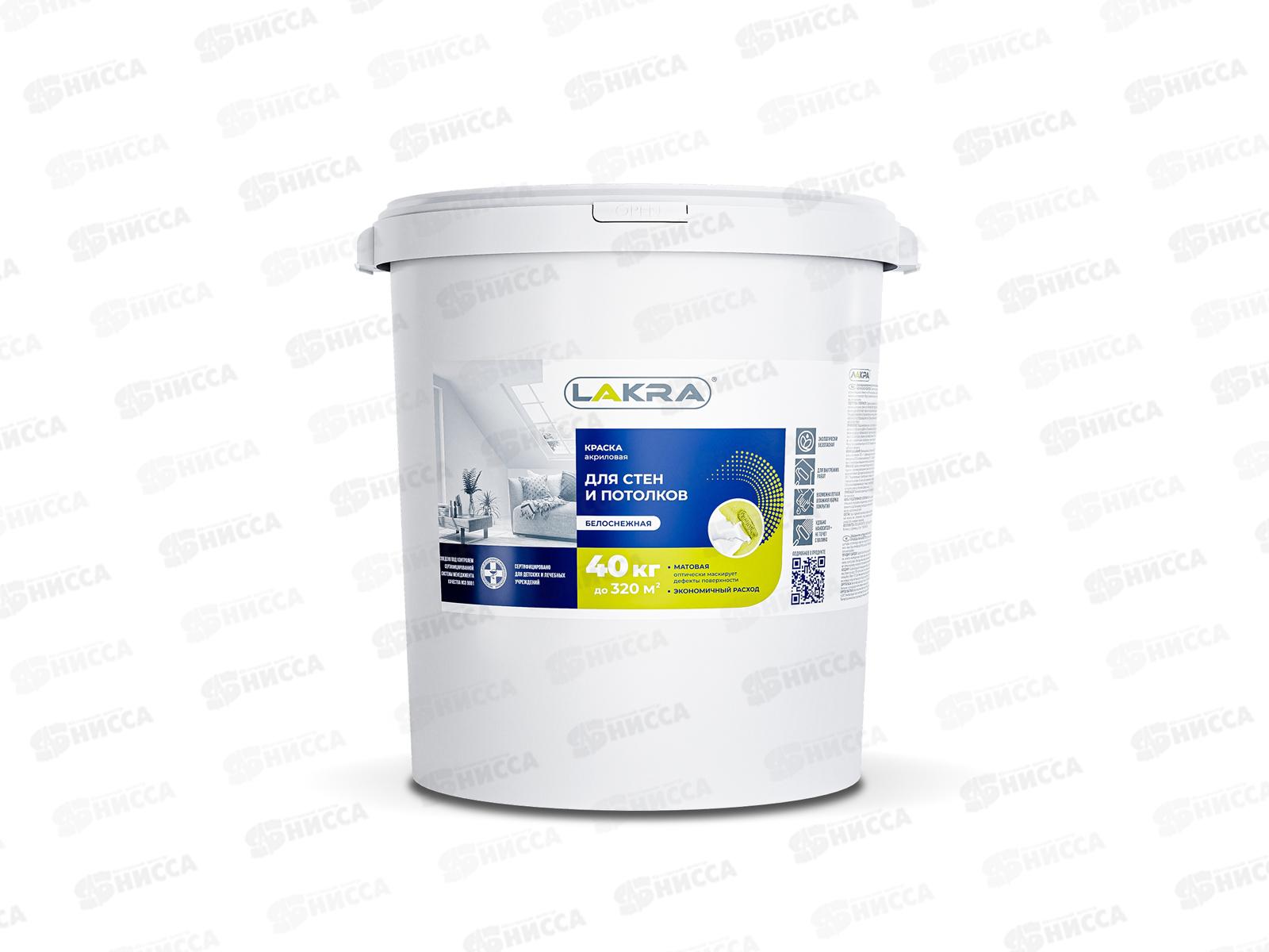 Код:447139; Краска акриловая для стен и потолков Лакра белоснежная 40кг, 8306523 *12