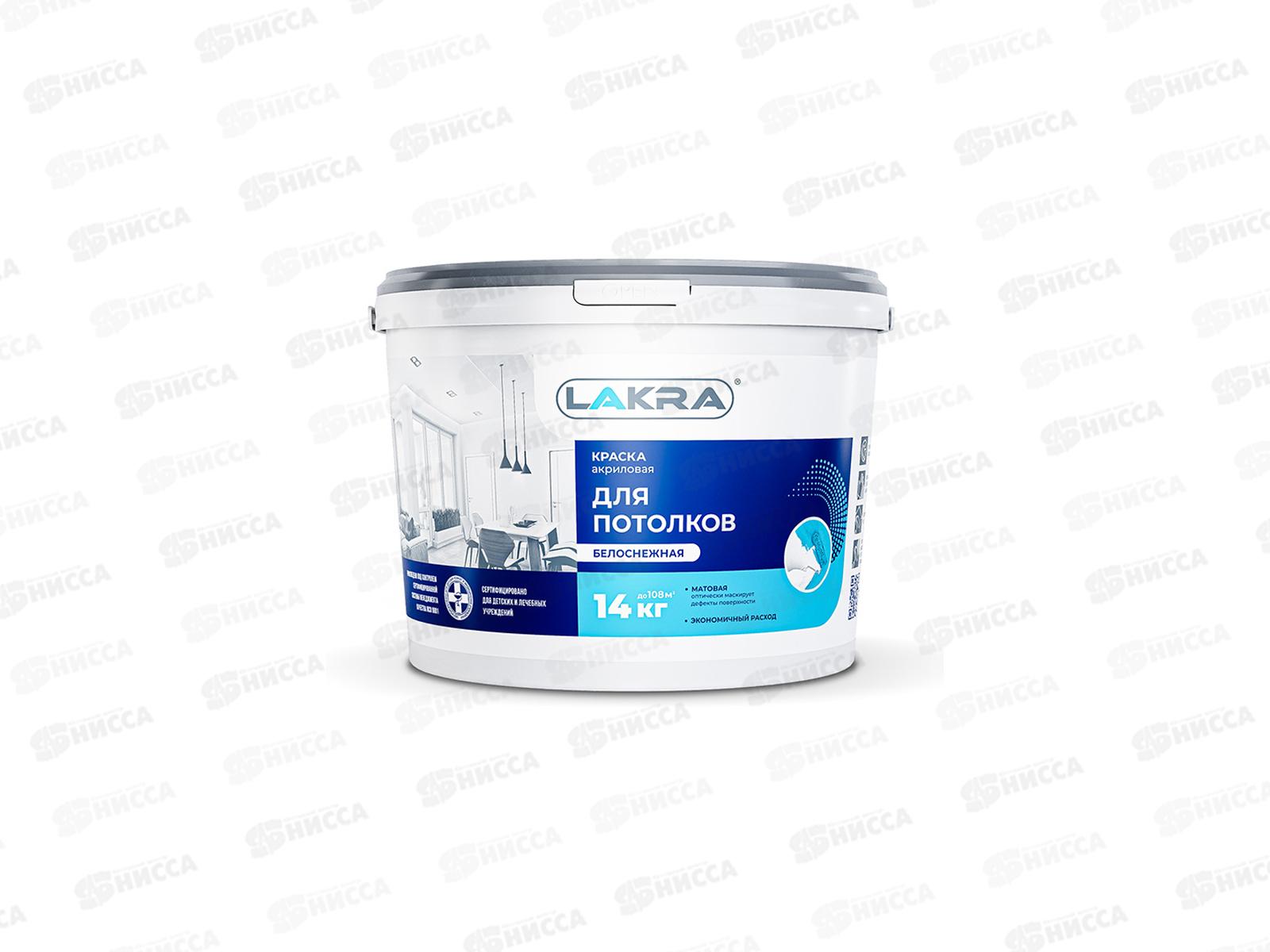 Код:448270; Краска водно-дисперсионная для потолков 14кг белоснежная, акриловая, Лакра, 8306460 *44
