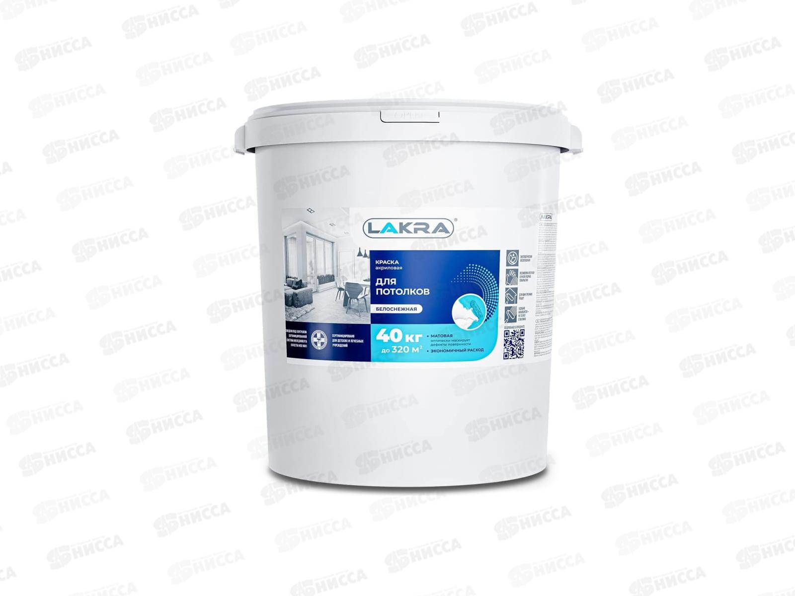 Код:483233; Краска водно-дисперсионная для потолков 40кг белоснежная, акриловая, Лакра, 8306522 *12
