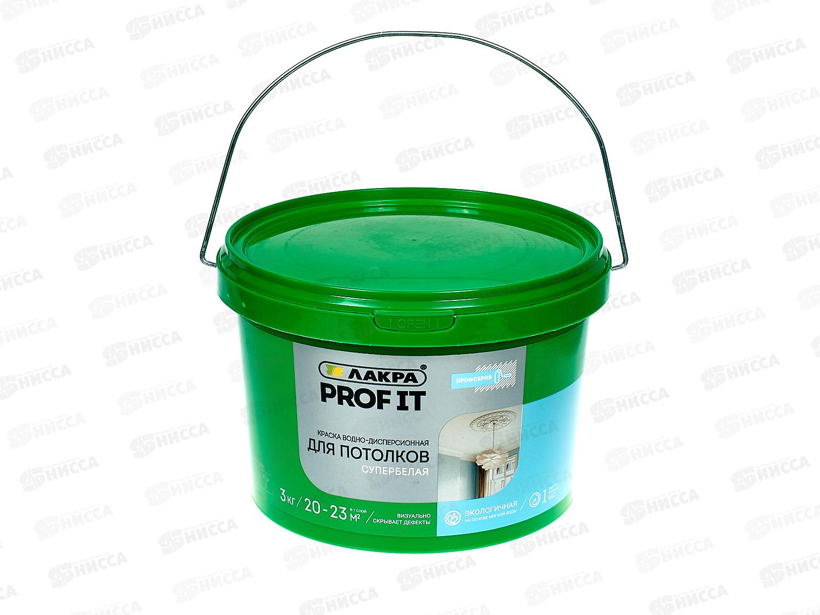 Код:493313; Краска акриловая для потолков Лакра PROF IT супербелая 3кг *1/144