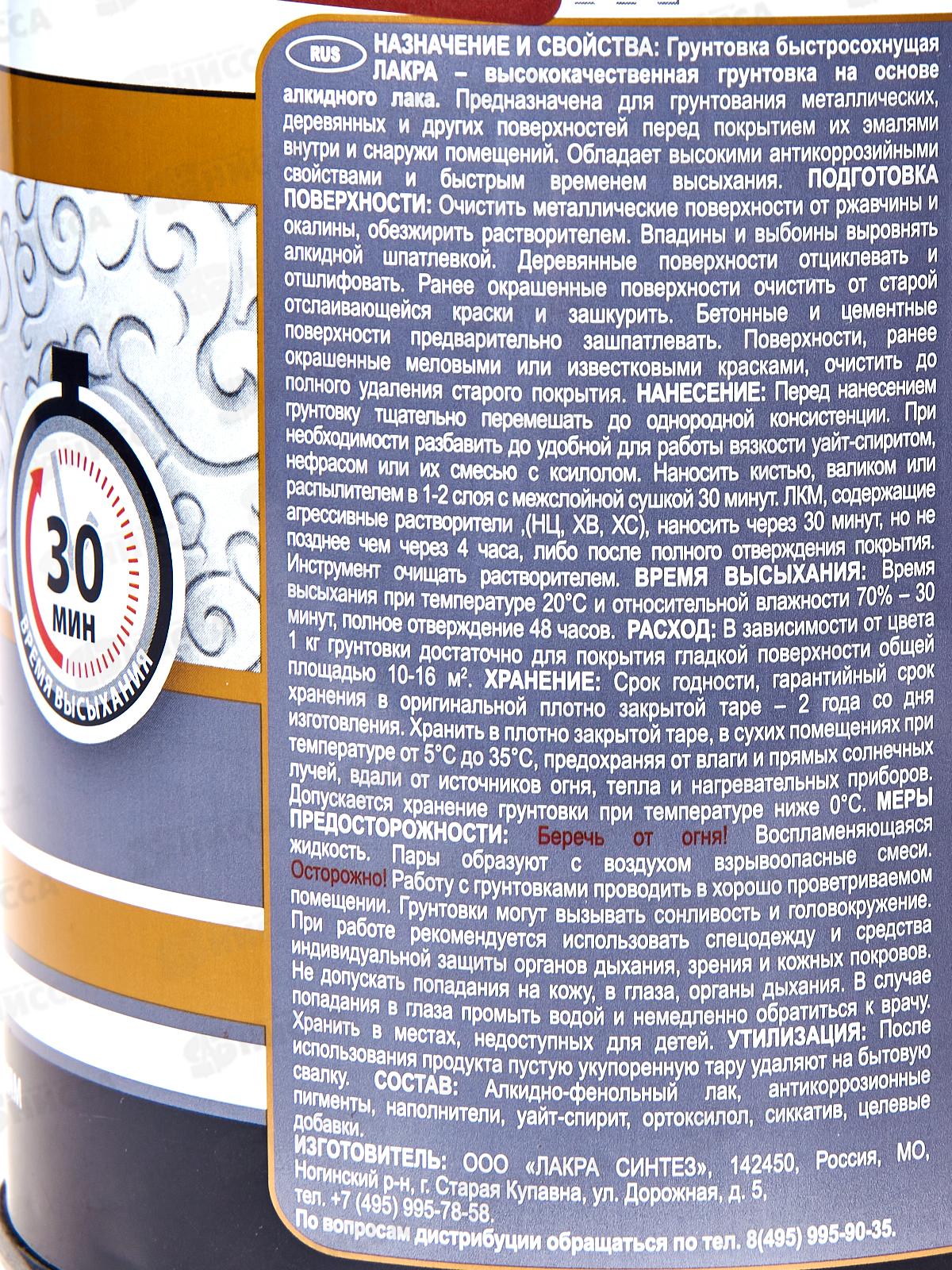 ГРУНТ ГФ-021 Лакра быстросохнущий 0.8кг красно-коричневый *10