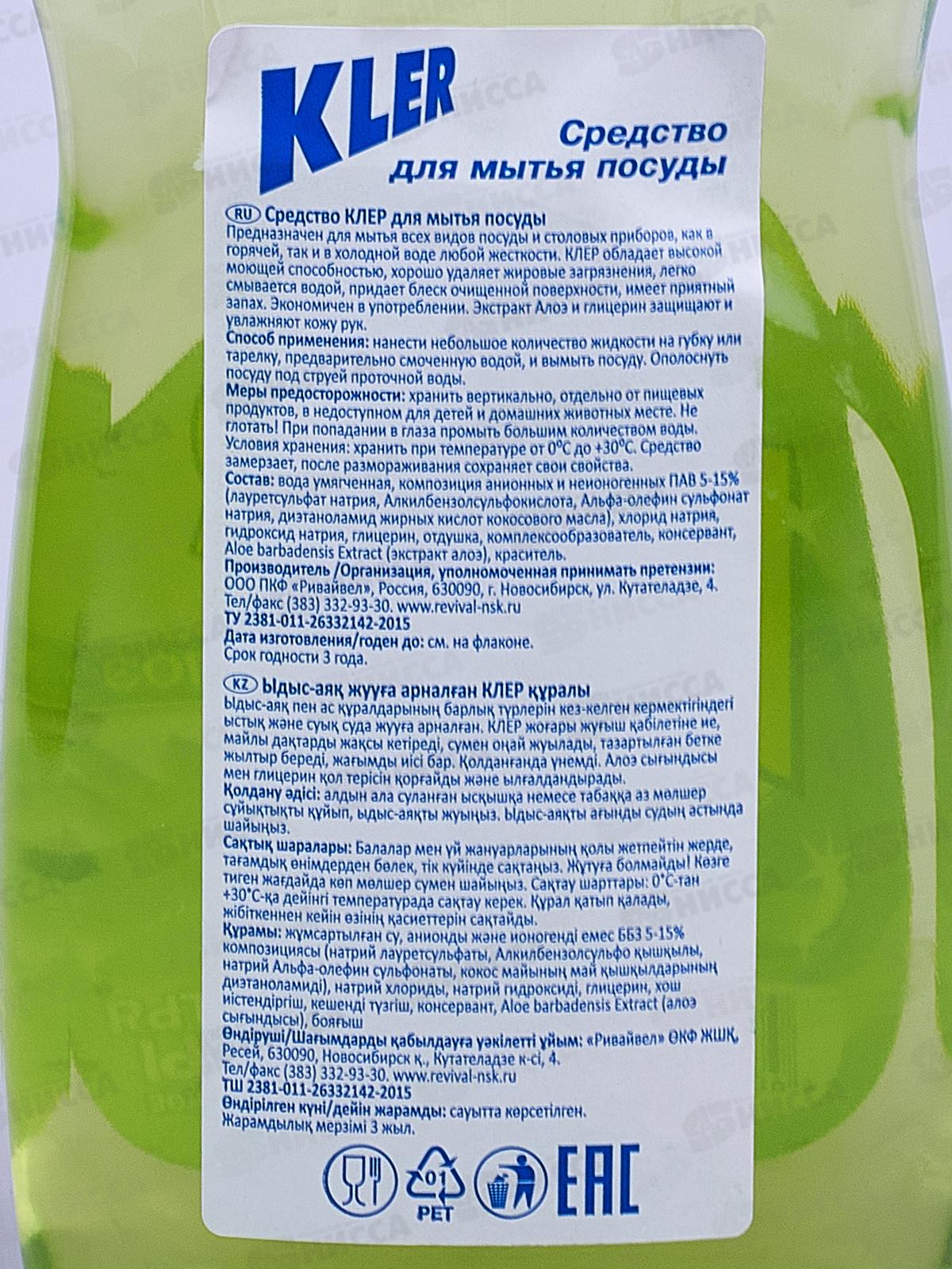 КЛЕР жидкость для посуды 500мл АЛОЭ *10