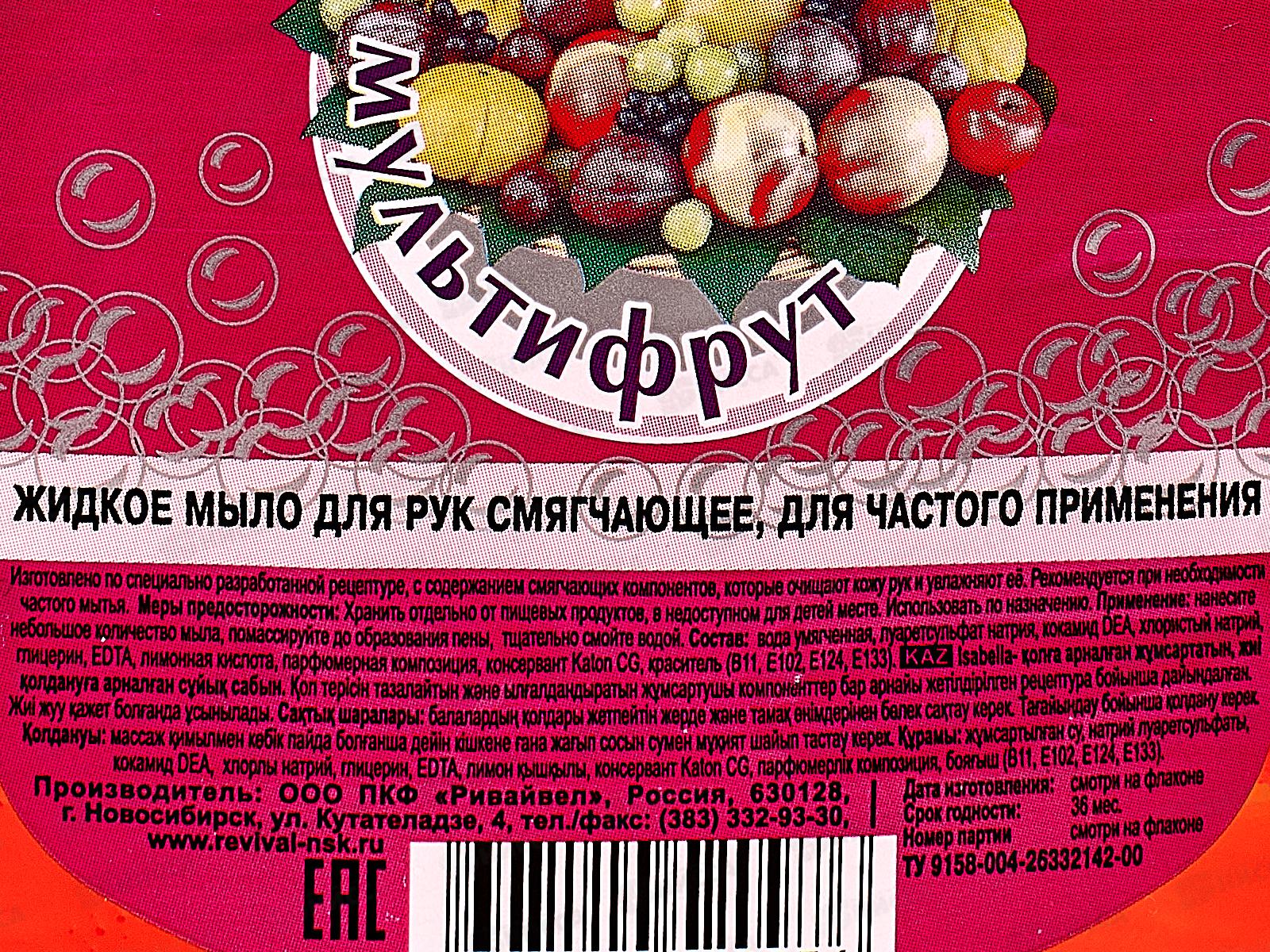 Состав: вода умягченная, пуаретсульфат натрия, кокамид DEA хлористый натрий, глицерин, EDTA, лимонная кислота, парфюмерная композиция, консервант Katon CG, краситель (B11, E102 E124, E133).
