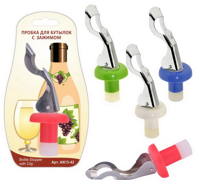 Код:138682; Пробка для бутылки с зажимом 3 цвета .AN13-42 *144