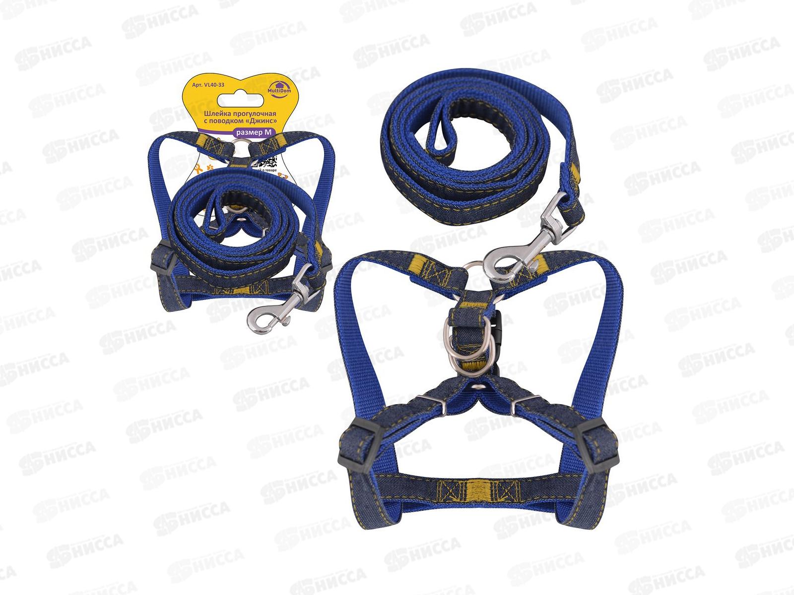 Код:436607; Шлейка прогулочная с поводком Джинс р.M VL40-33 *12