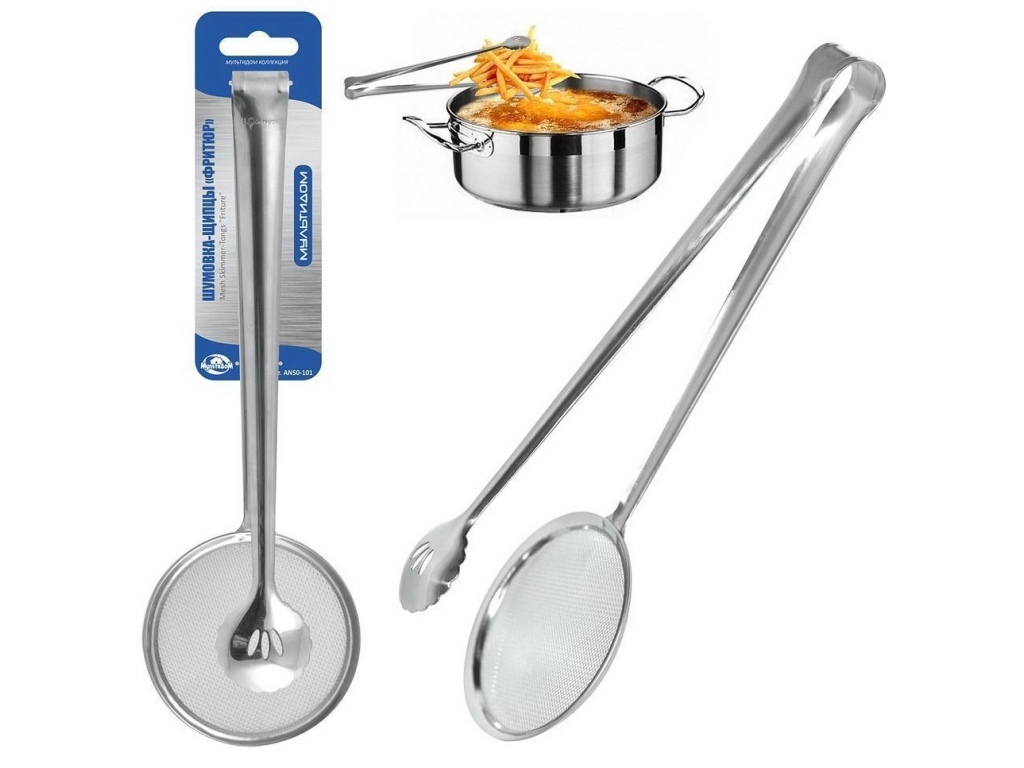 Оригинальная шумовка-щипцы станет идеальным инструментом для жарки картофеля фри, луковых колец, фрикаделек и приготовления любых блюд во фритюре. Одн...