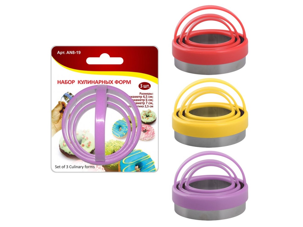 Код:290798; Набор кулинарных форм 3шт Для печенья 4,5 6 7см AN8-19