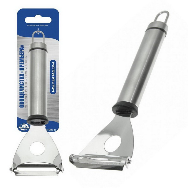 Чистить картофель, морковь, кабачки, редис и другие овощи всегда проще со специальной овощечисткой «Премьера». Нож оригинальной конструкции позволяет ...