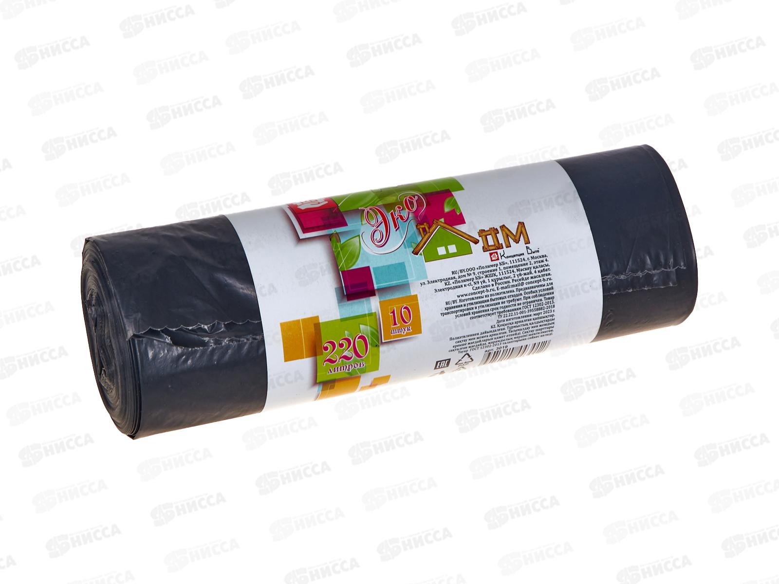 Код:188681; Мешки для мусора 220л 10шт (рулон) ЭКОДОМ ПНД*20 03019