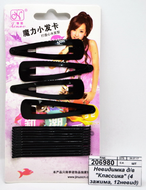 Код:206980; Невидимка для волос "Классика" (4 зажима, 12невидимок) 859618 *10