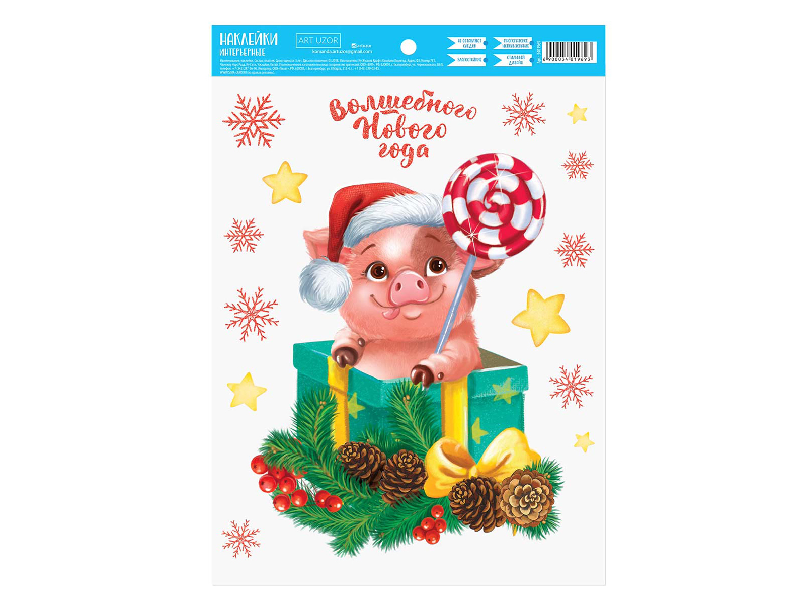 Код:542223; Наклейка на стекло "Море подарков" 15*20см 185-0812