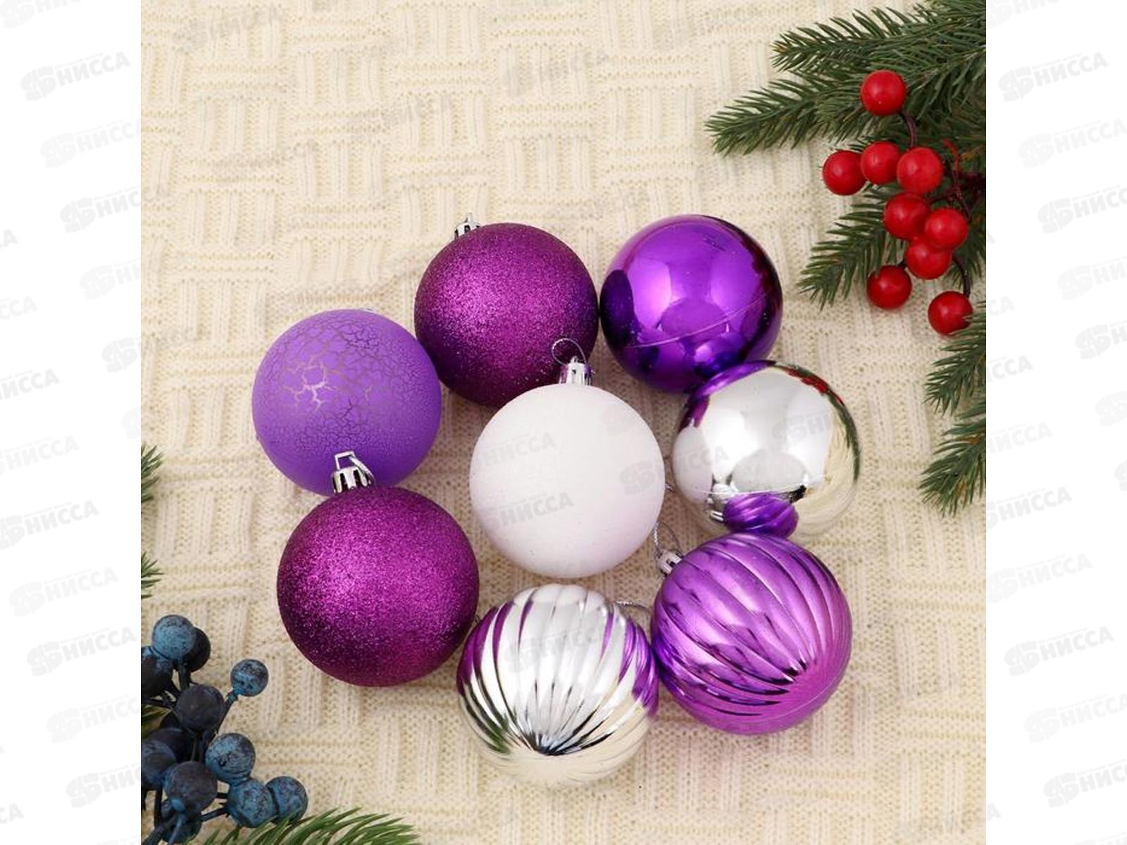 Код:271196; Набор шаров 8шт, 6см узорный фиолет 2122528
