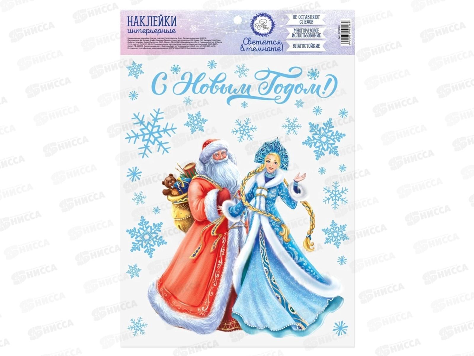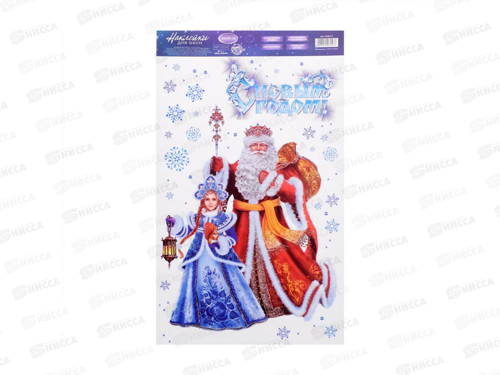 Код:417905; Наклейка на стекло "Дед Мороз и Снегурочка" 20*34см 4948157